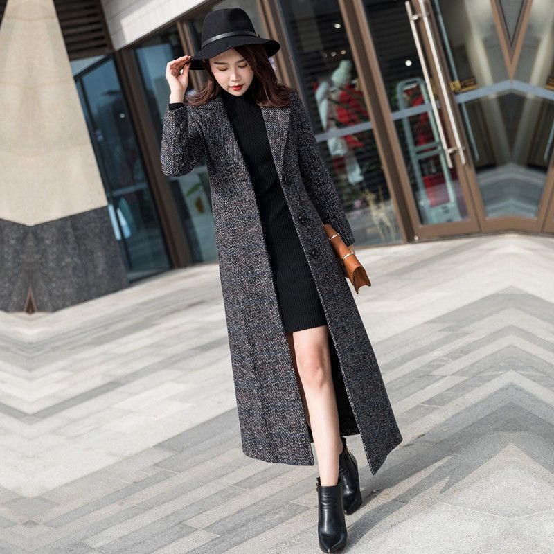 | nameOriginal | New women's plaid woolen coat women's thickened long 2023 autumn and winter slim woolen overknee trench coat |