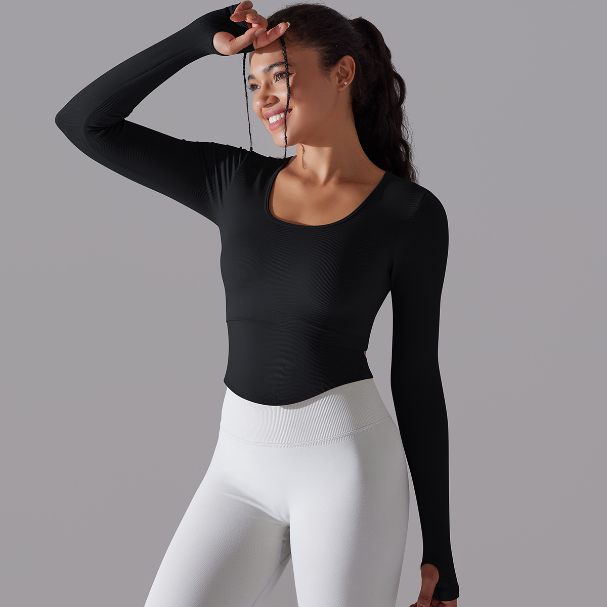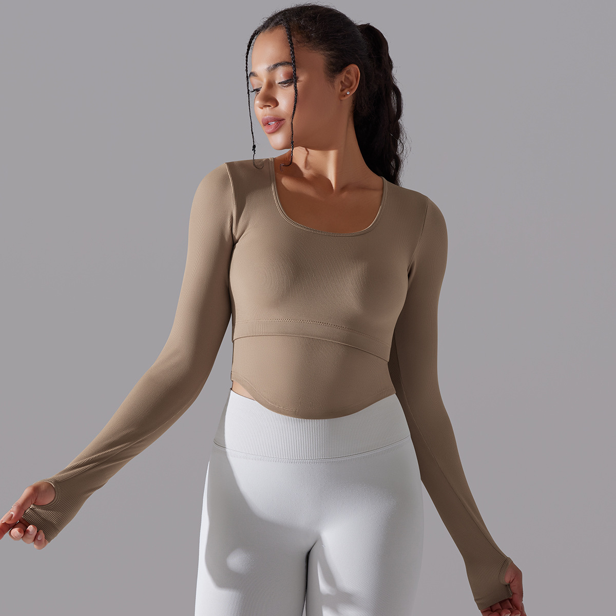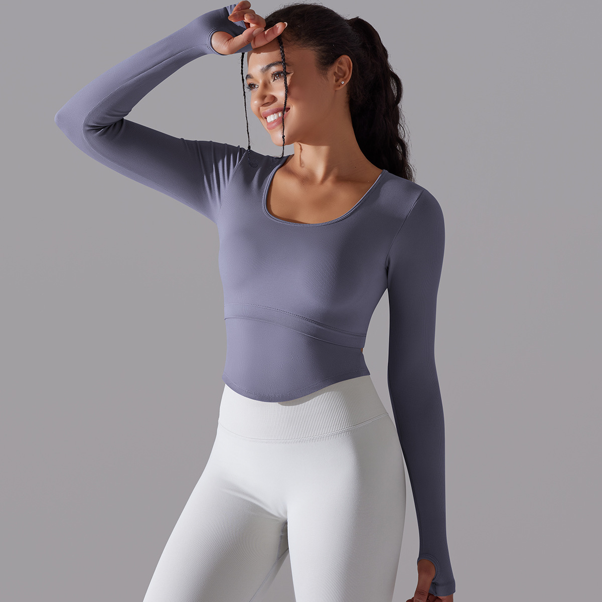 | nameOriginal | New women's seamless knitted solid color split bellyband thread sports long sleeve running fitness yoga clothes top |