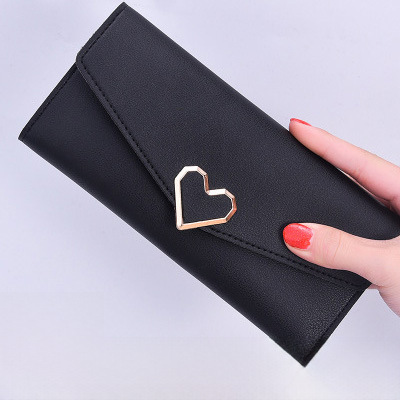 | nameOriginal | New women's wallet long heart-shaped buckle three-fold coin purse PU leather card holder small fresh soft wallet hot sale |