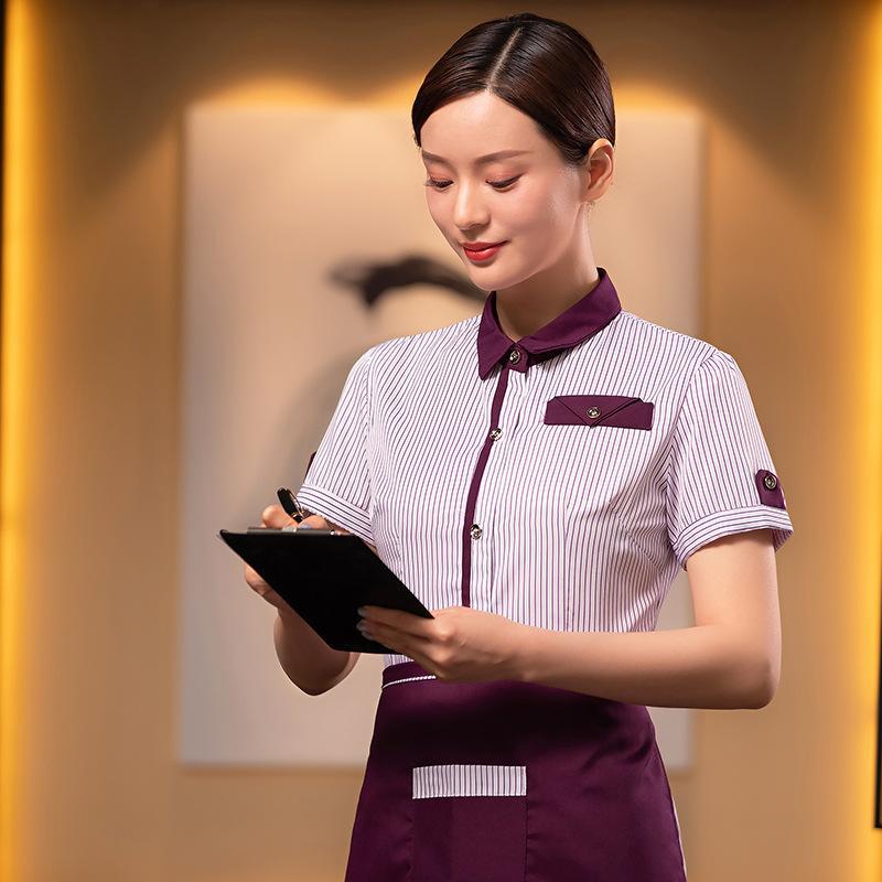 | nameOriginal | New Work Breathable Summer Short-sleeved Ladies Uniform Hotel Western Restaurant Milk Tea Hot Pot String Shop Coffee House Stripes |
