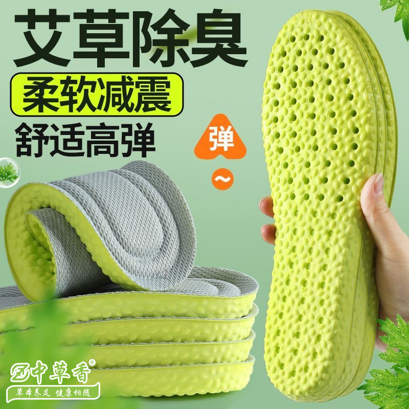 | nameOriginal | New Wormwood sports poop feeling insole PU latex shock absorption deodorant breathable long standing not tired non-slip height increasing insole |