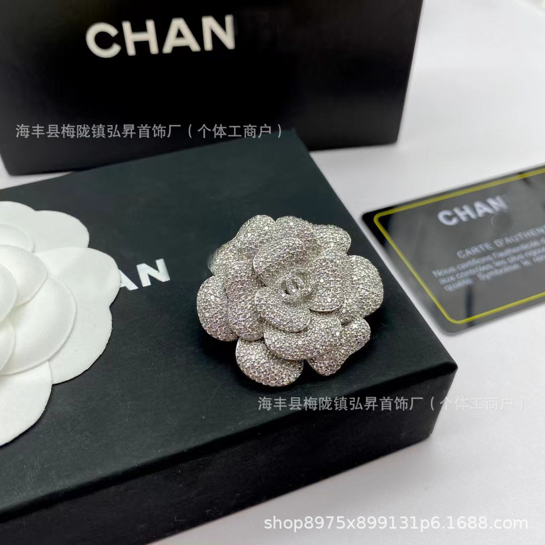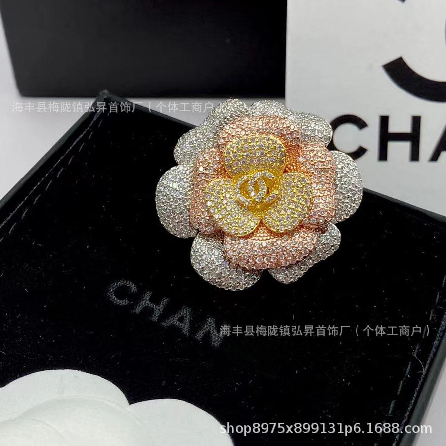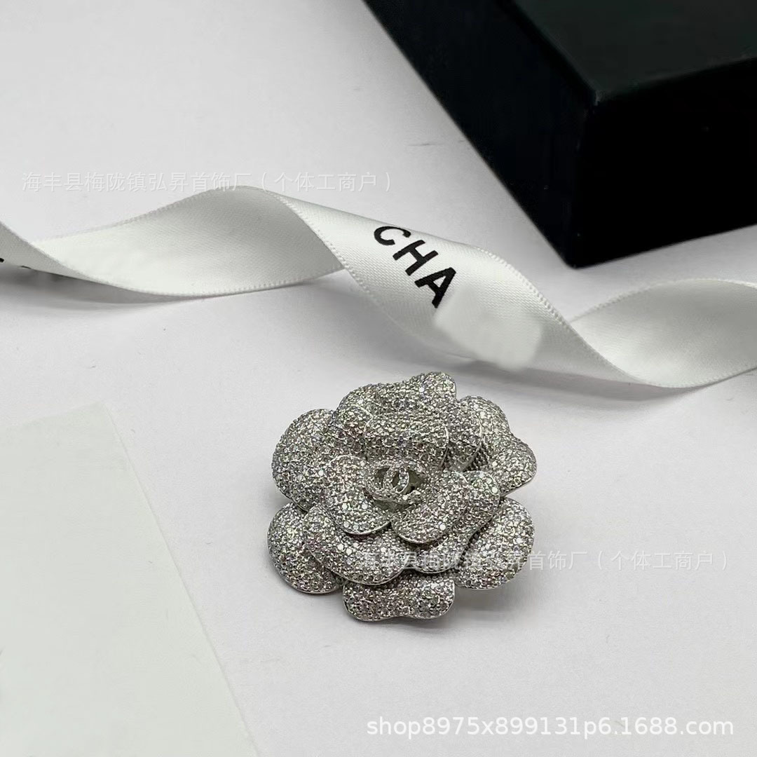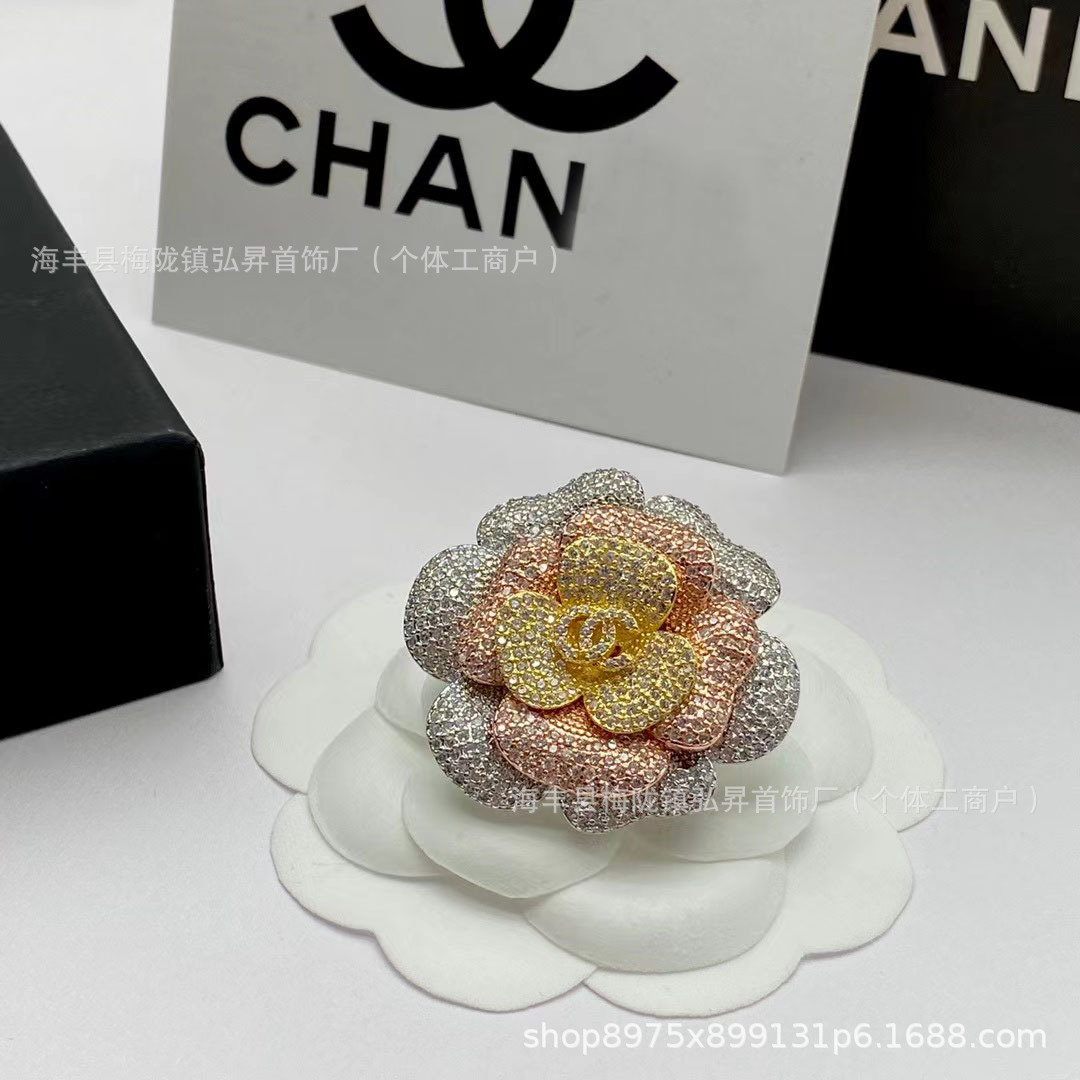 | nameOriginal | New Xiangjia double C Camellia full diamond brooch fragrant fashion grandma pin Chanel style multi-color petal chest decoration |