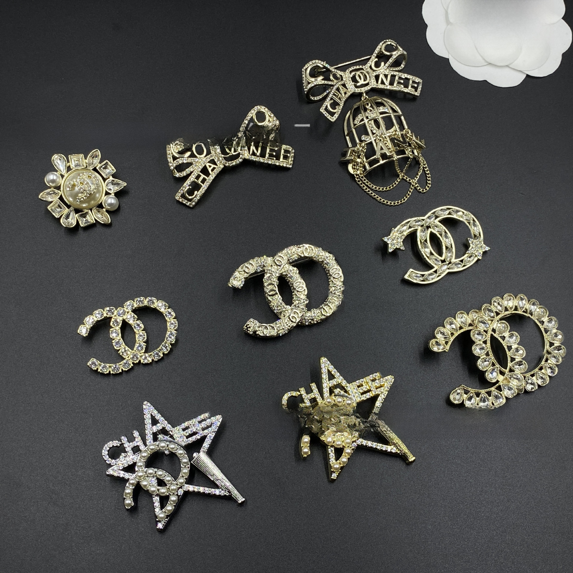 | nameOriginal | New Xiangjia double C letter diamond brooch fragrant grandma middle-ancient pearl star corsage small fragrant bird cage corsage |