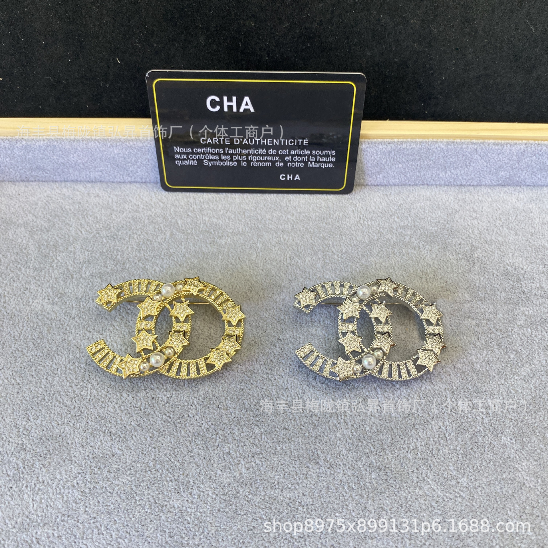 | nameOriginal | New Xiangjia double C Star diamond brooch fragrant grandma letter pearl pin chest decoration fashion Chanel style brooch |