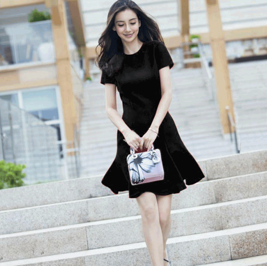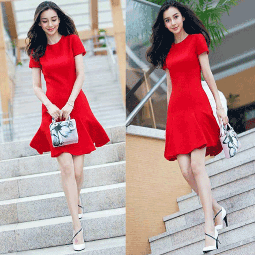 New Yang Ying’s thin red dress short sleeves