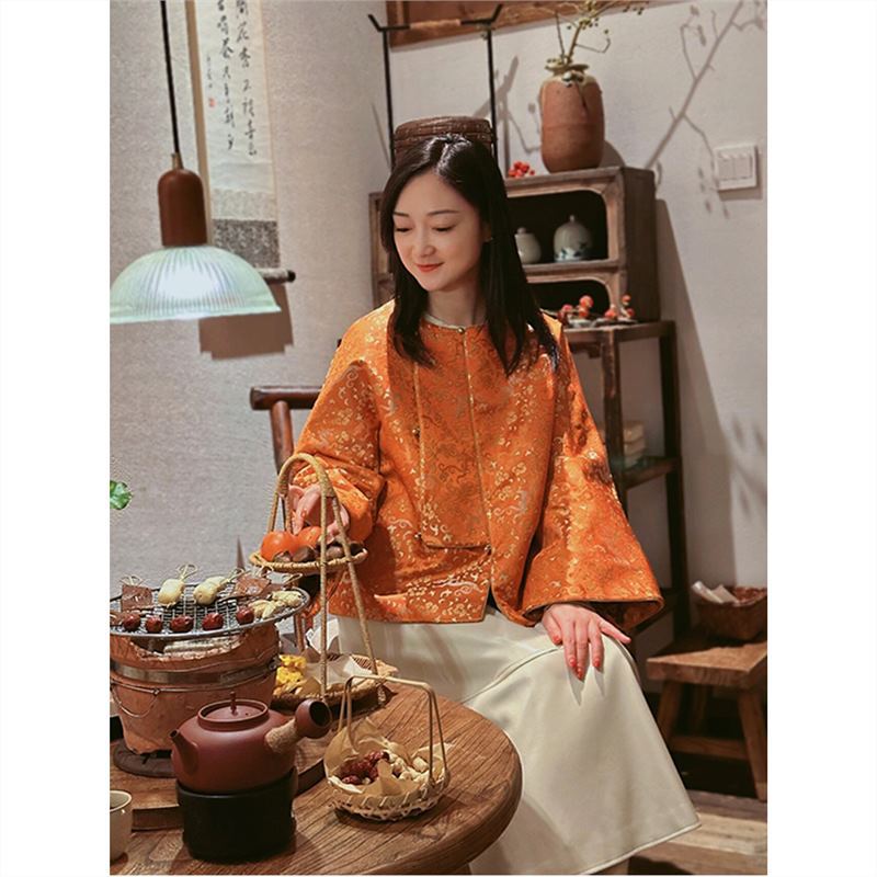 | nameOriginal | New Year battle clothes high-grade super nice yellow jacquard top new Chinese style old money style light luxury coat for women autumn and winter |