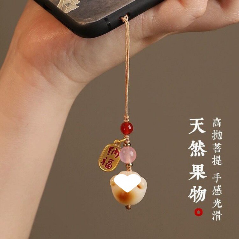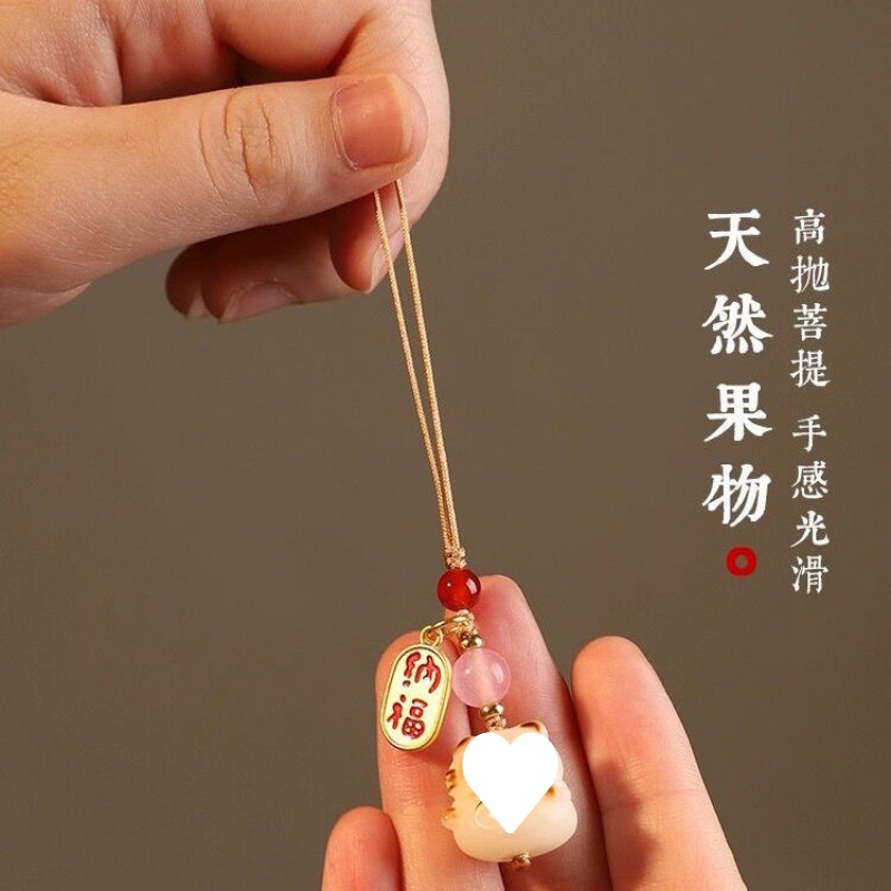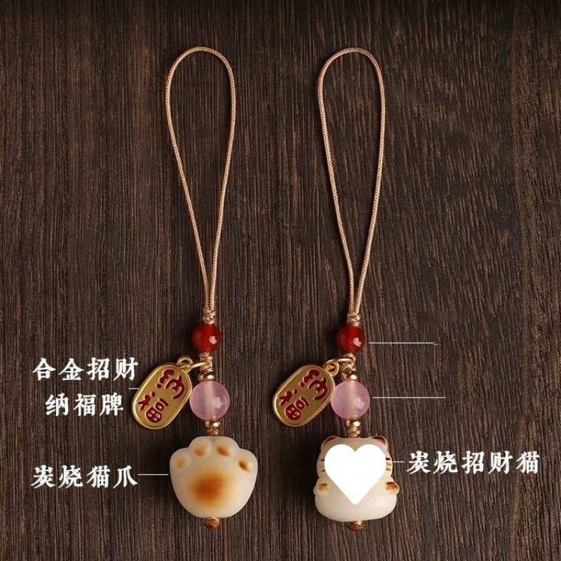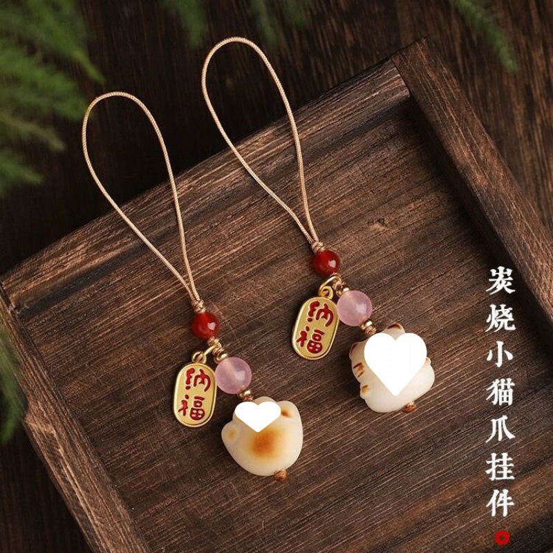 New Year Mobile Phone Chain White Bodhi Root Charcoal Claw Cat Lanyard Pendant Cute Female Mobile Phone Case Keychain Pendant