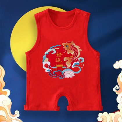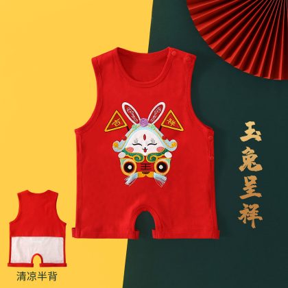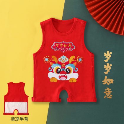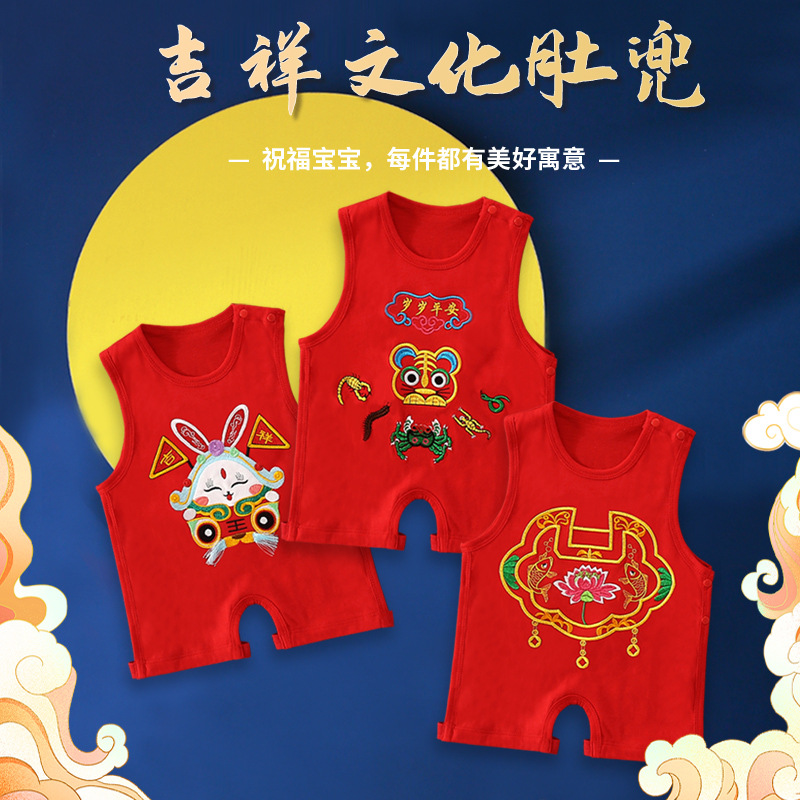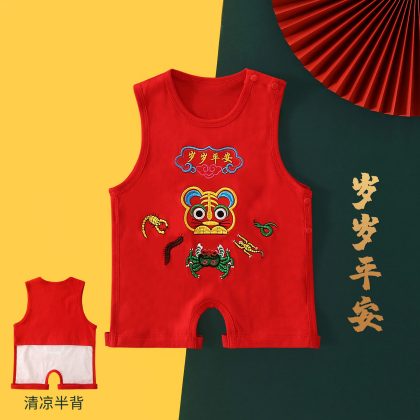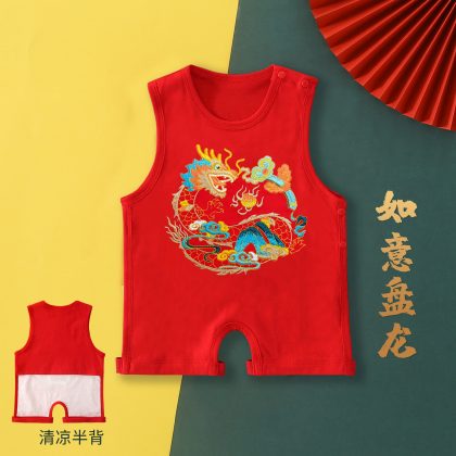 New Year of the Dragon Baby’s Foot-connected Bellyband Summer Newborn Baby Vest Belly-protecting Half-back Clothing Chinese Style Red