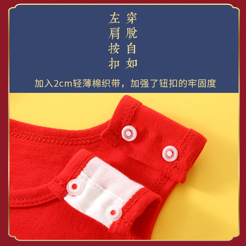 New Year of the Dragon Baby's Foot-connected Bellyband Summer Newborn Baby Vest Belly-protecting Half-back Clothing Chinese Style Red