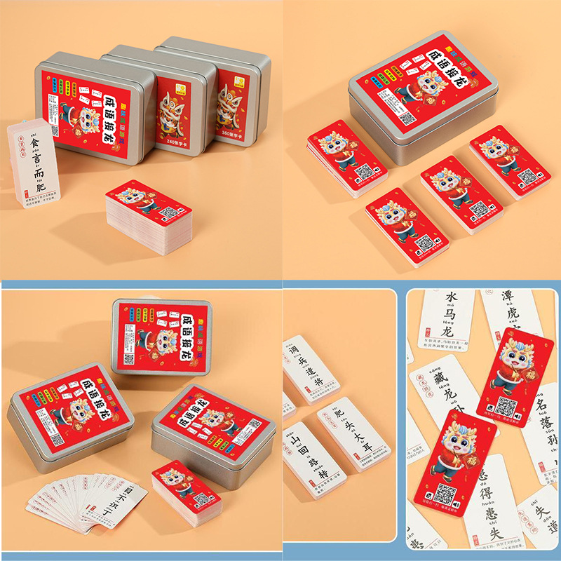 New Year of the Dragon Idioms Solitaire Card Knowledge Energy Card Parent-Child Interactive Board Game Card Puzzle Toys for Primary School Students