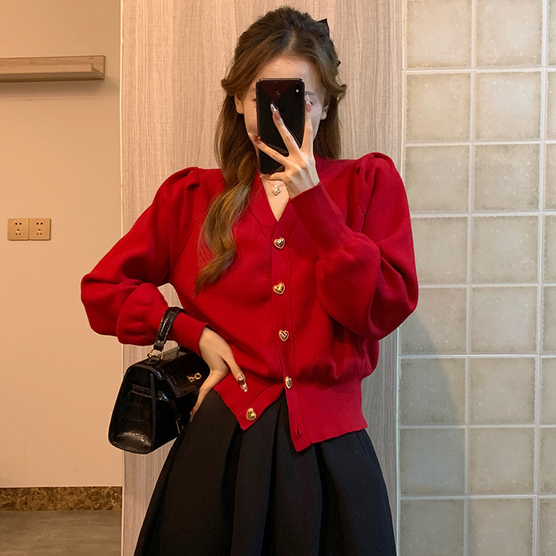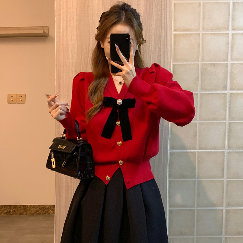 | nameOriginal | New Year red bow sweater women's V-neck knitted cardigan coat Chanel style New Year's birth year slim top |