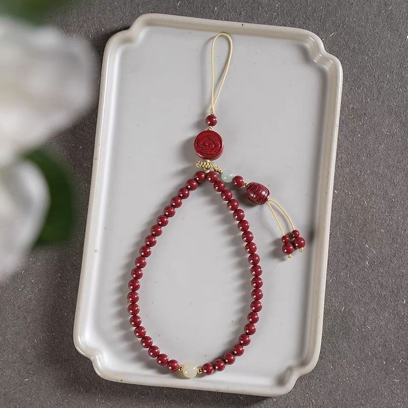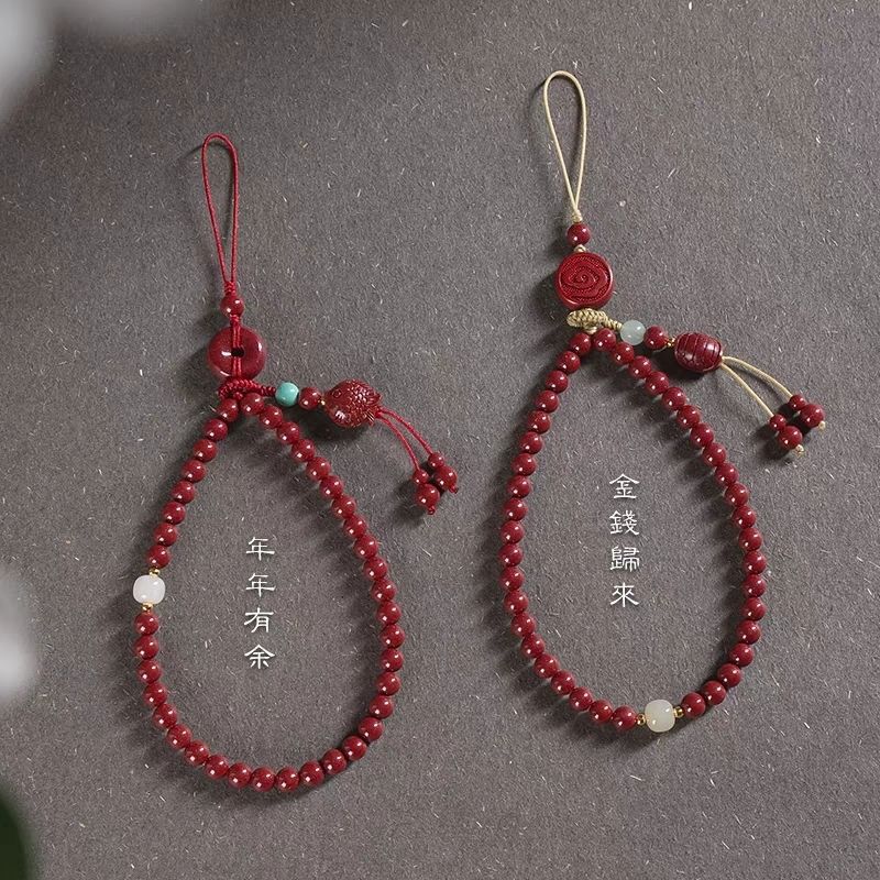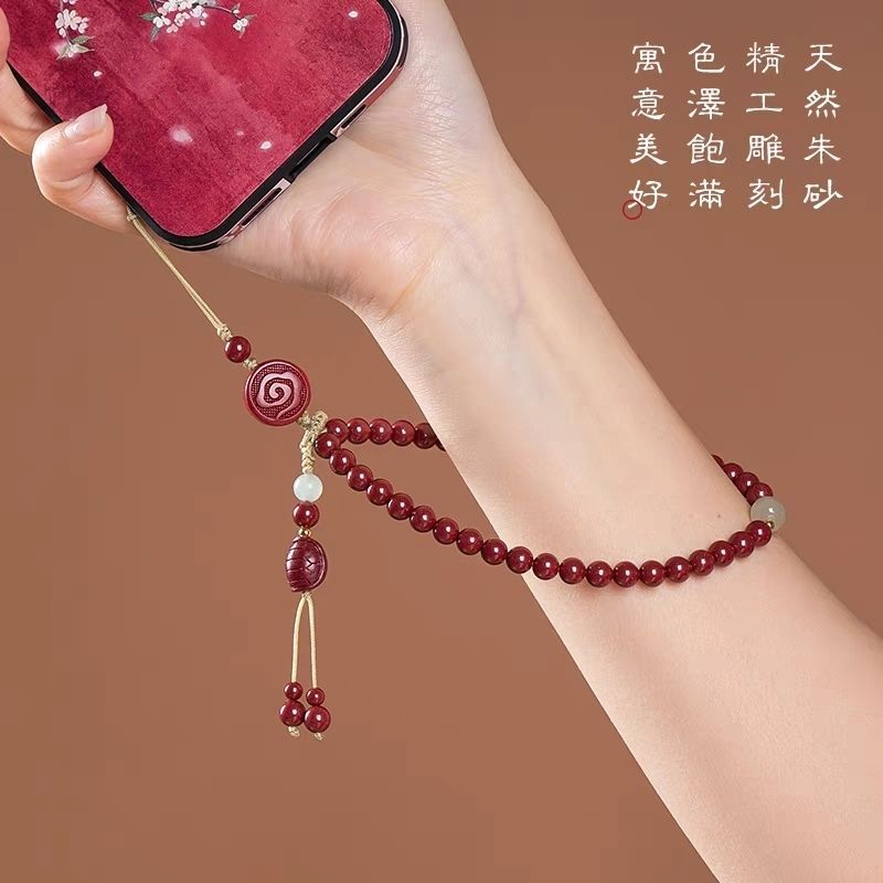 New Year’s Mobile Phone Chain Wind High Content Sand Beaded Cinnabar Mobile Phone Lanyard Women’s Pendant Beads Small Fish Pendant Cross-border Distribution