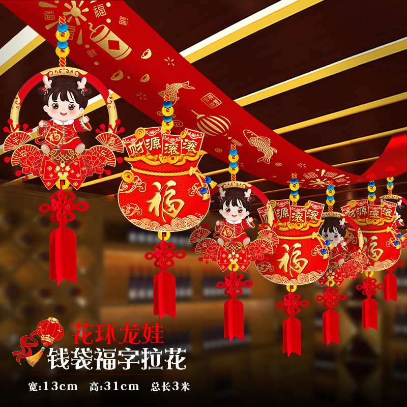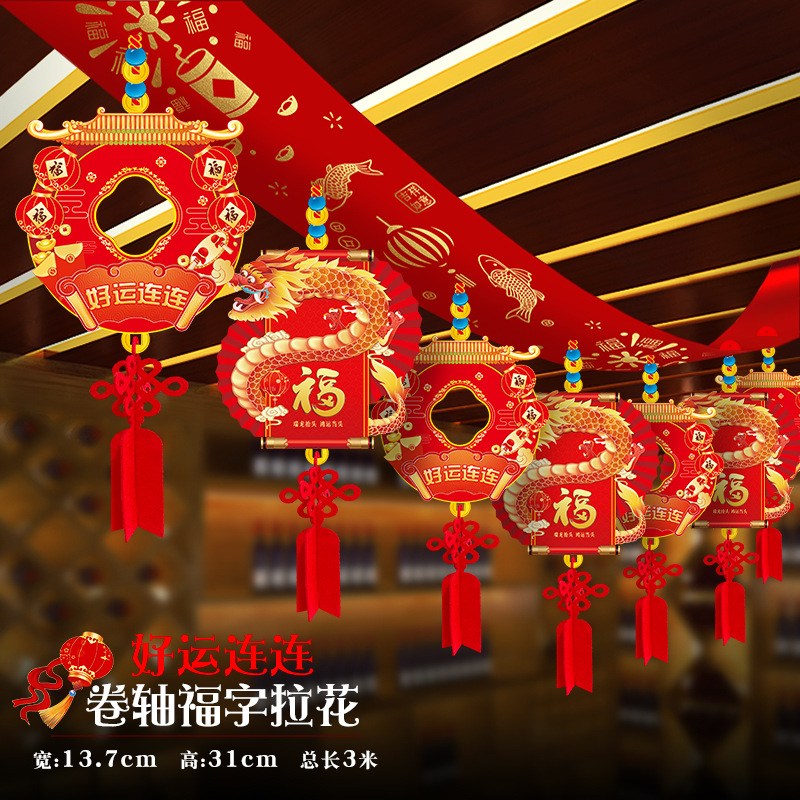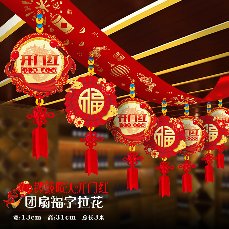 New year's opening red workplace layout Garland opening decoration Spring Festival Store New Year's ceiling ribbon New Year's Day small ornaments