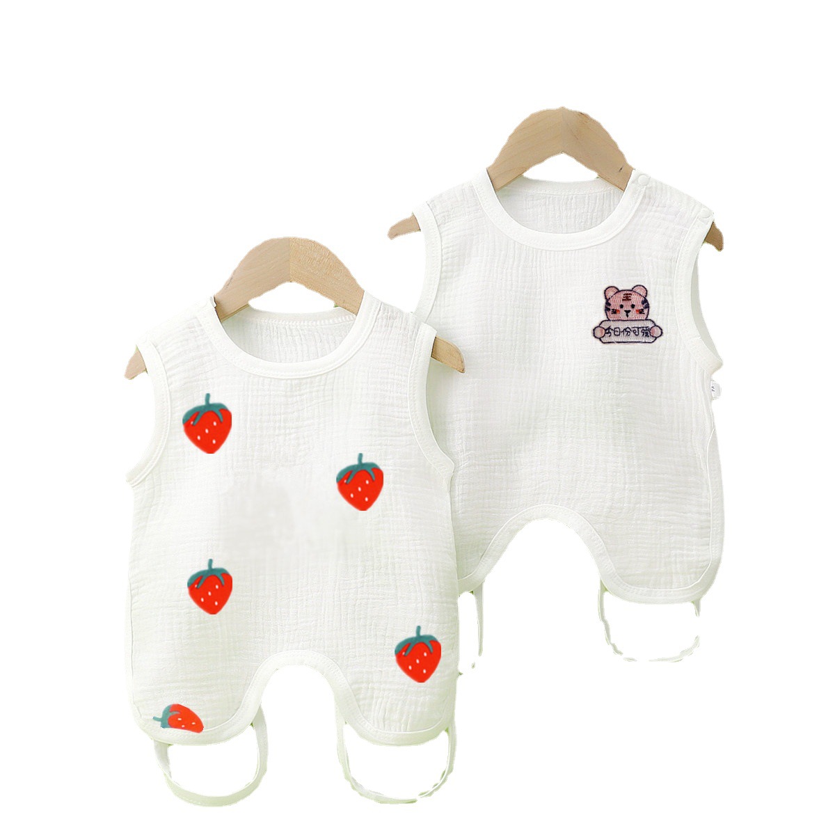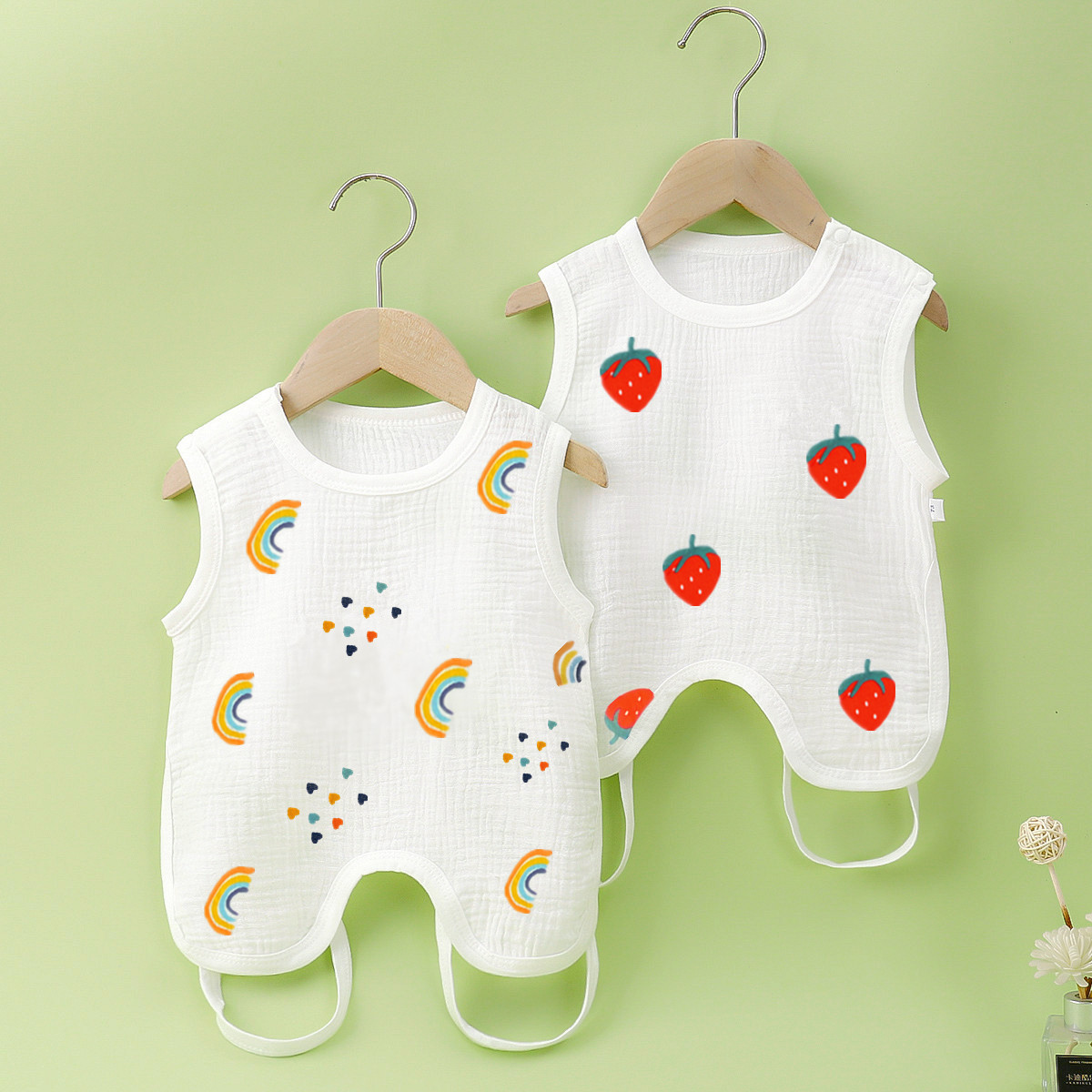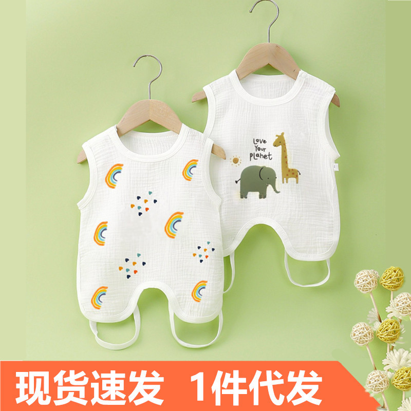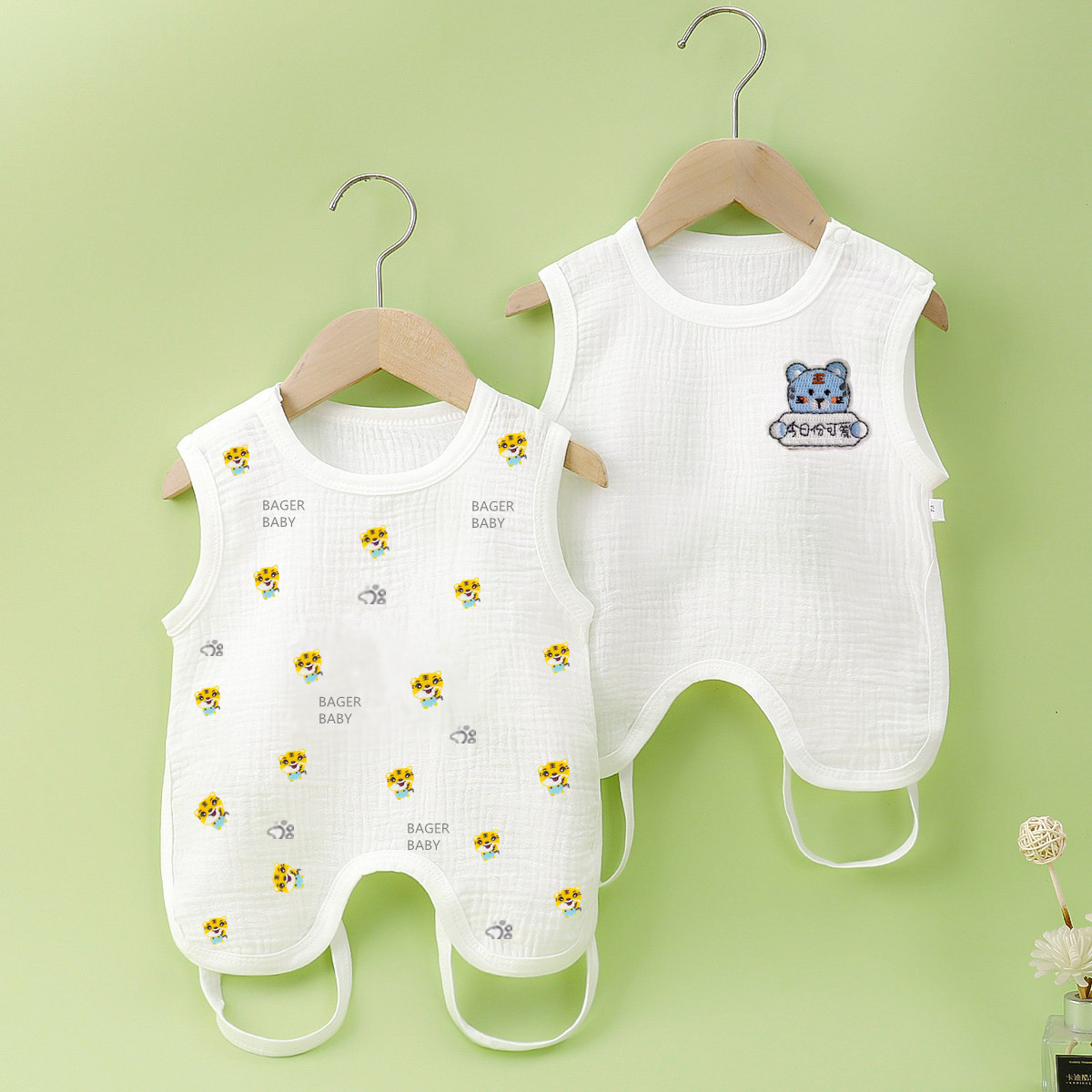 Newborn Baby Bubble Gauze Half-back Clothes for Boys and Girls Baby Summer Thin Stomach with Legs and Belly Shoulders Open to Prevent Catches Cold and Protects Belly