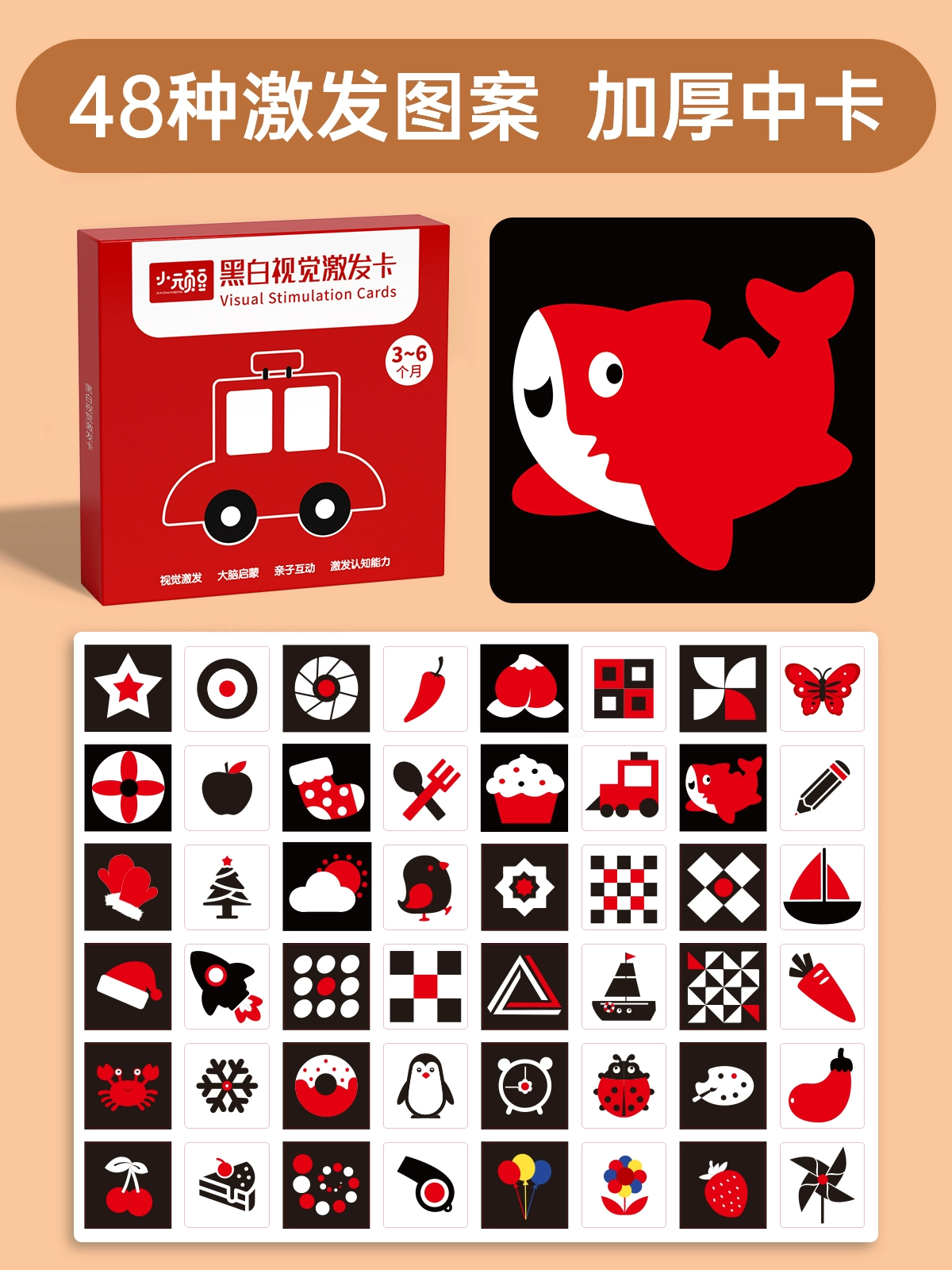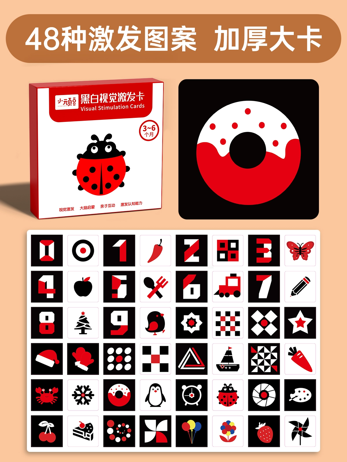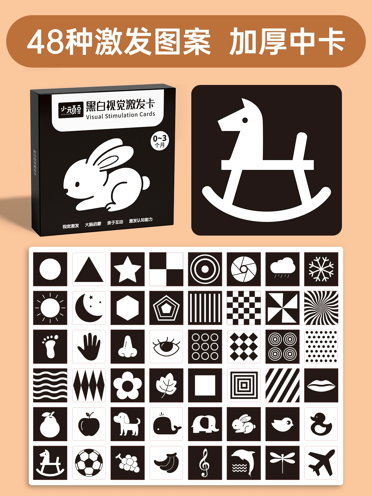 Newborn baby color tracking 3 months black and white card