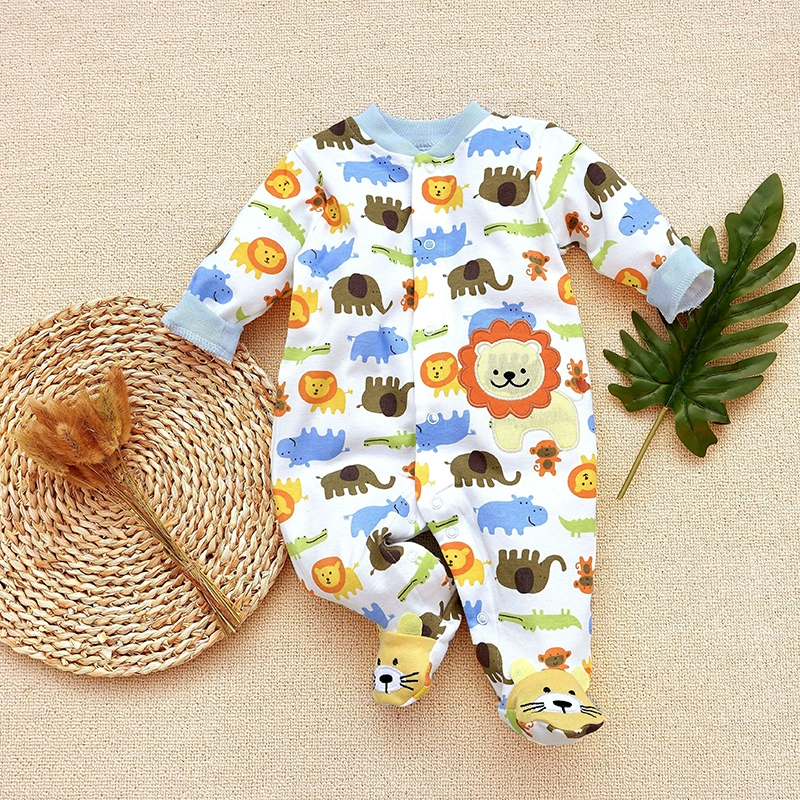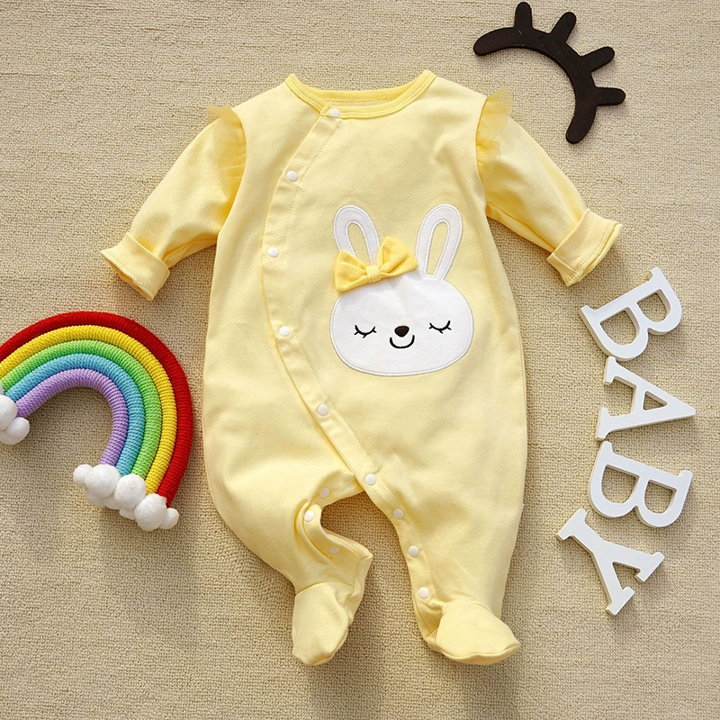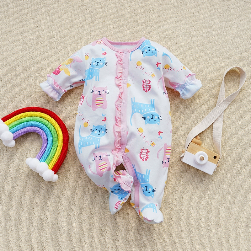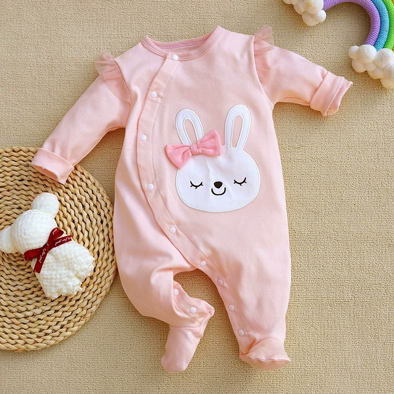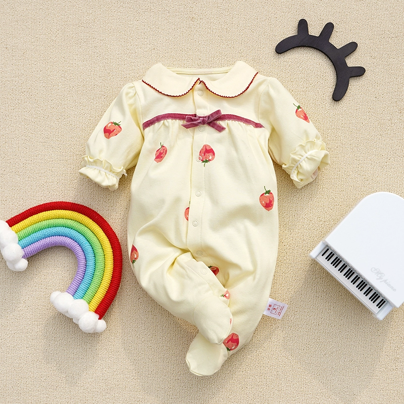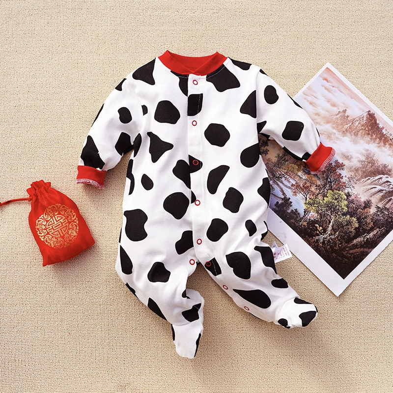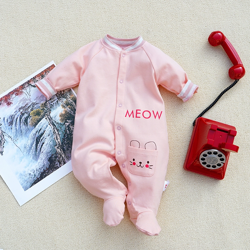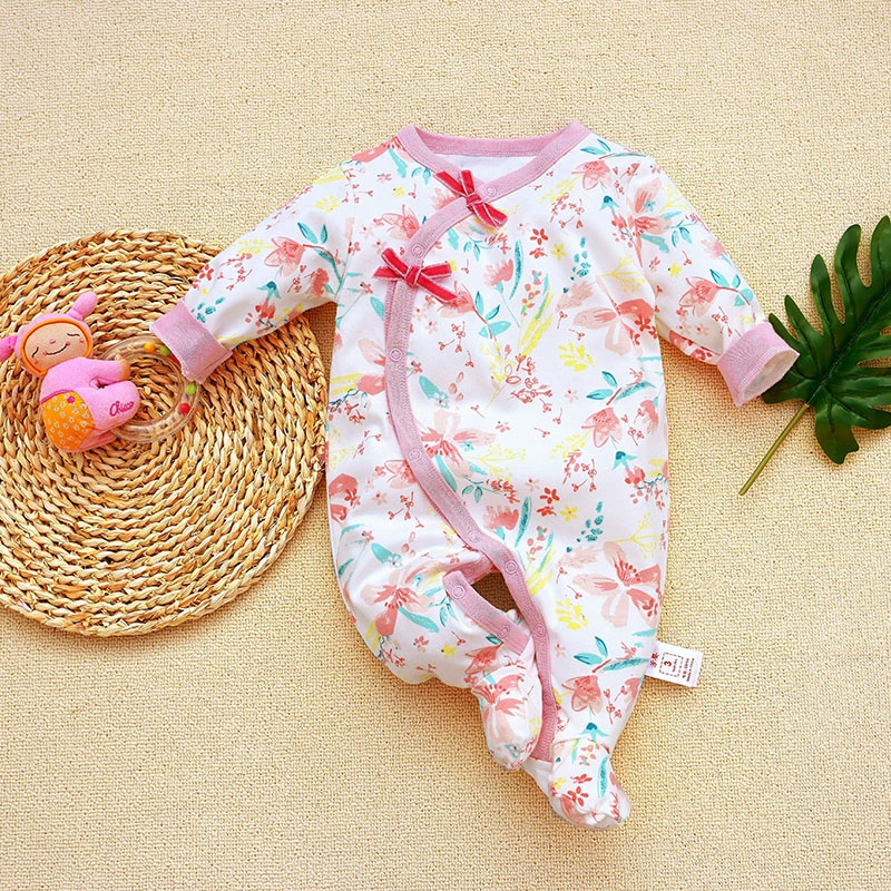 | nameOriginal | Newborn baby jumpsuit with legs, spring and autumn pure cotton, cute baby clothes for 100 days, long-sleeved pajamas, full moon crawling clothes |
