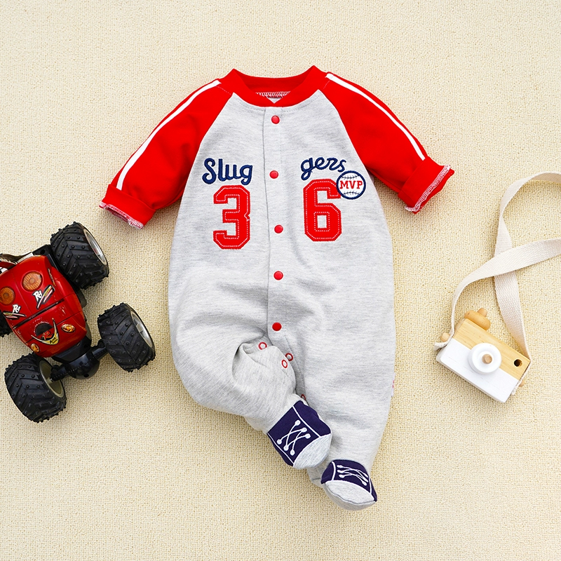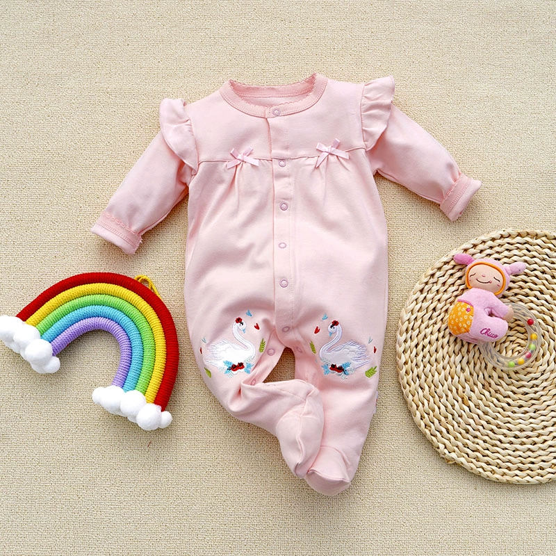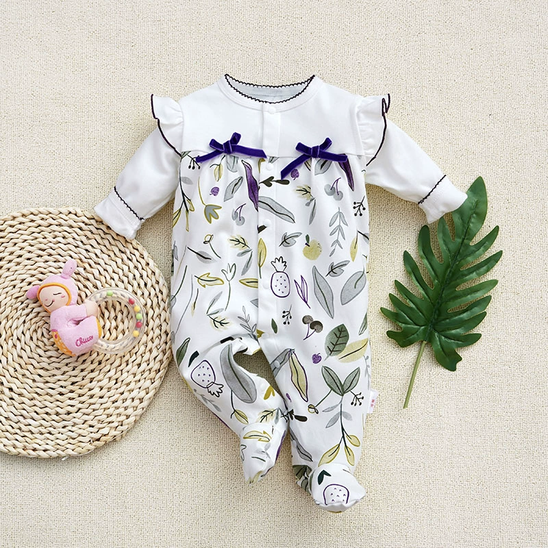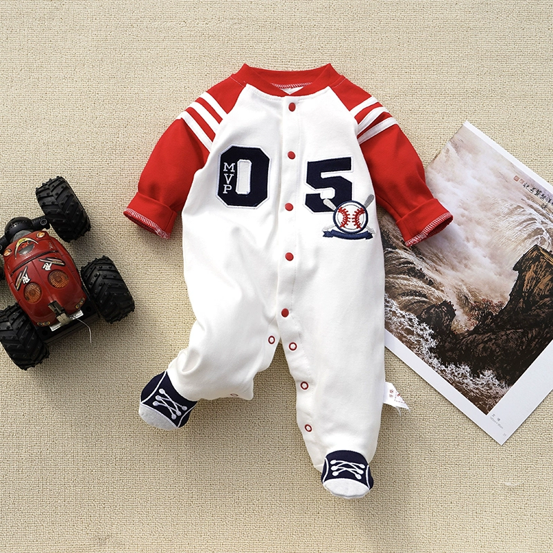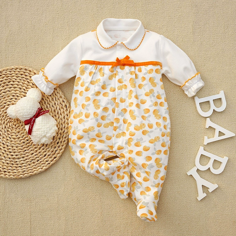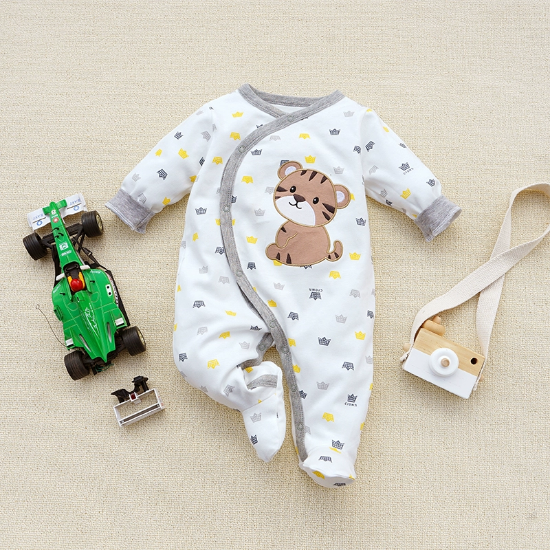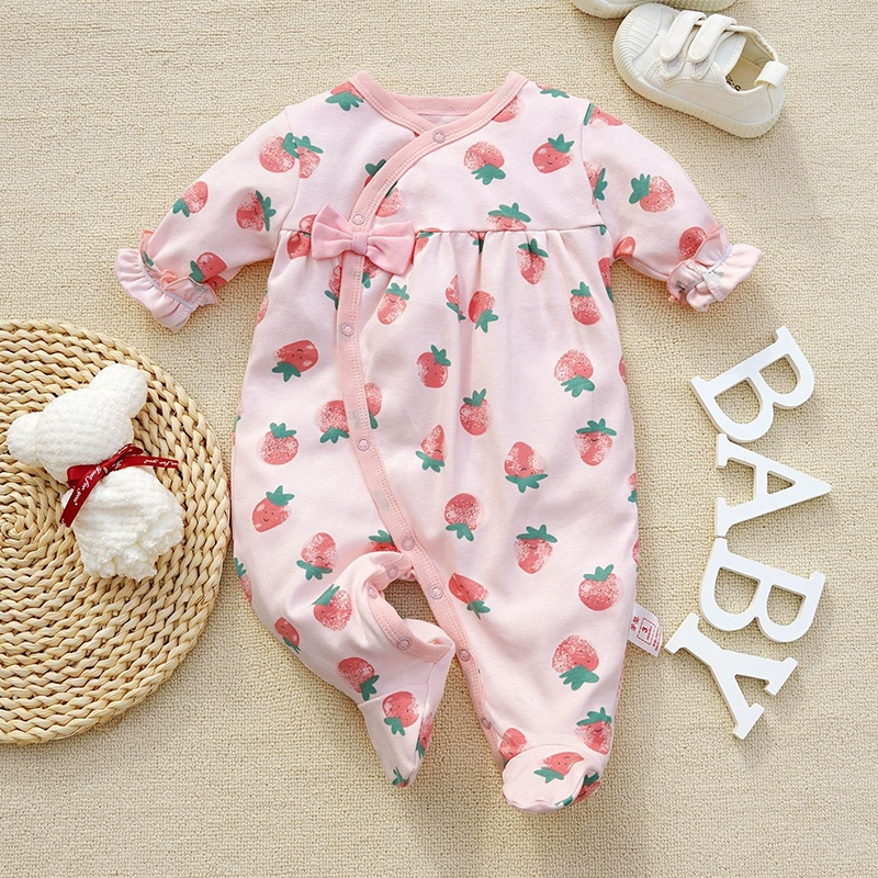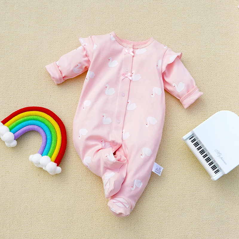 | nameOriginal | Newborn baby jumpsuit with legs, spring and autumn pure cotton, cute baby clothes for 100 days, long-sleeved pajamas, full moon crawling clothes |