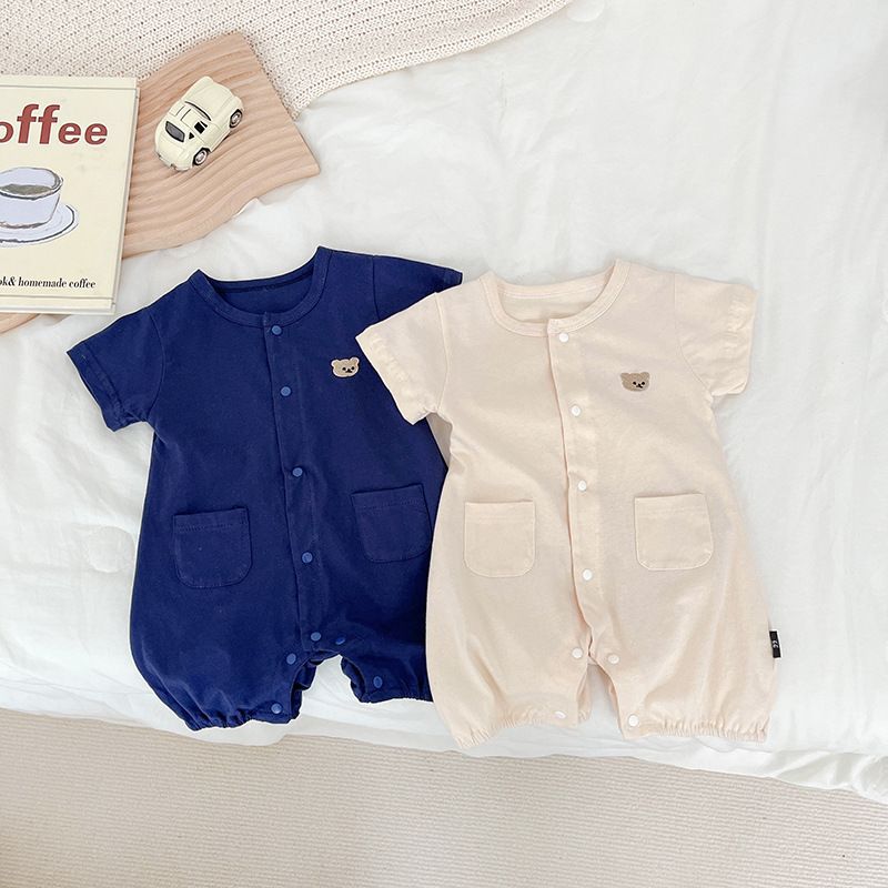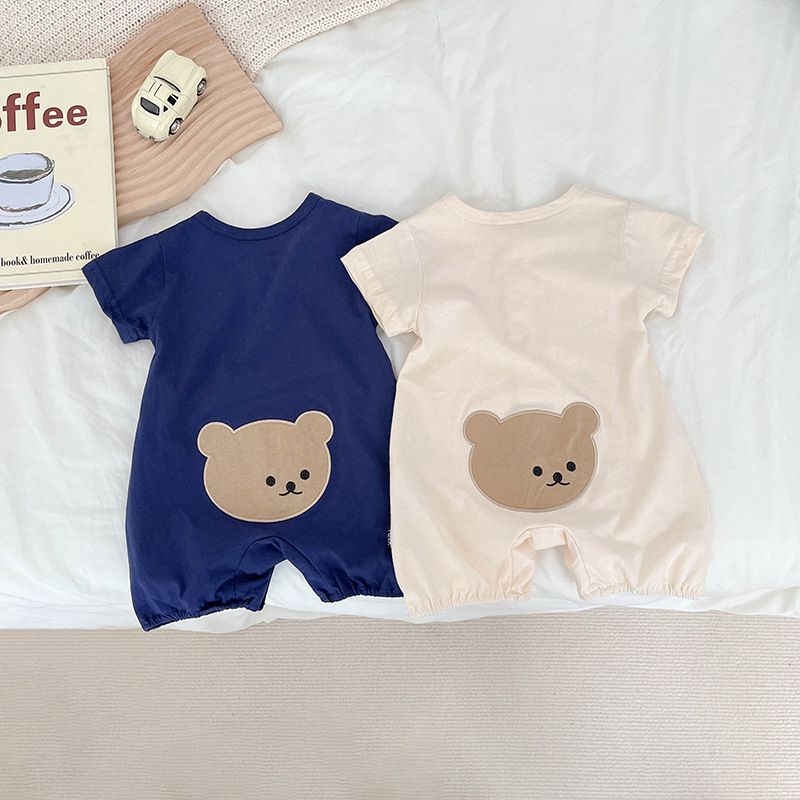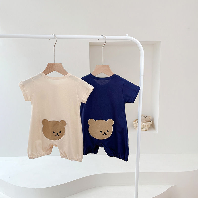 Newborn baby short-sleeved one-piece romper thin summer Boys and Girls cute bear sheath Western style romper 0176