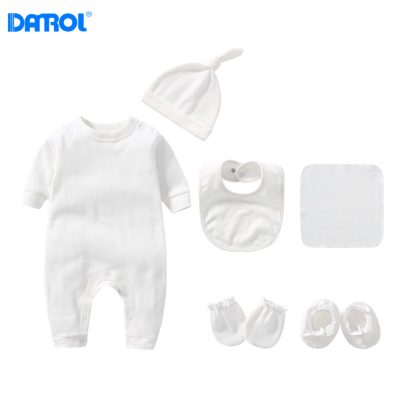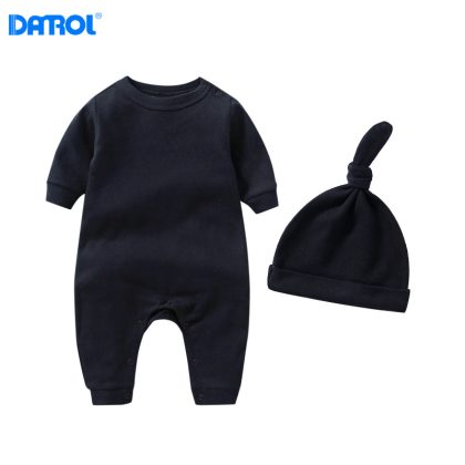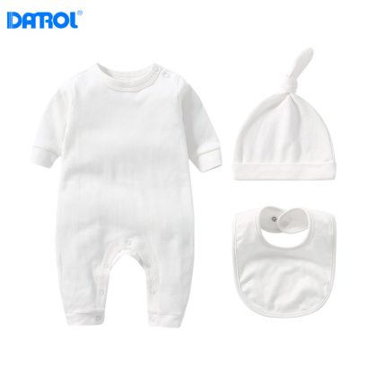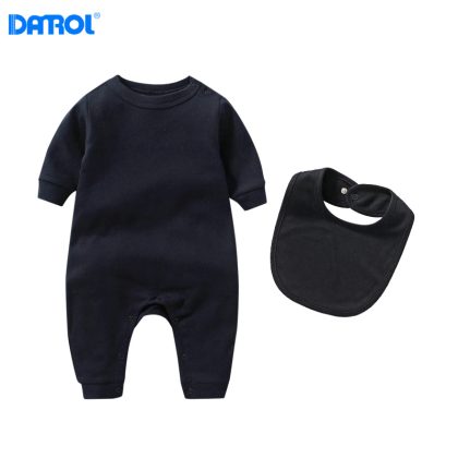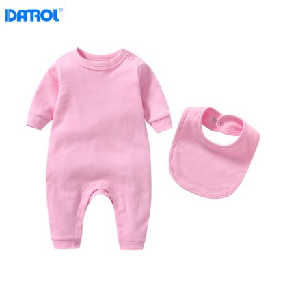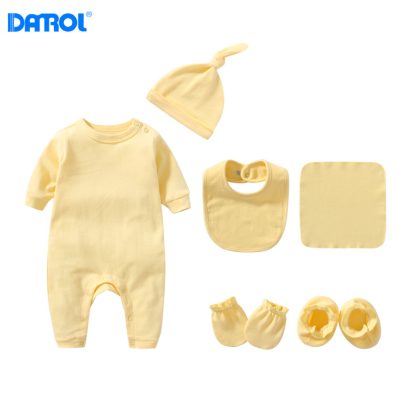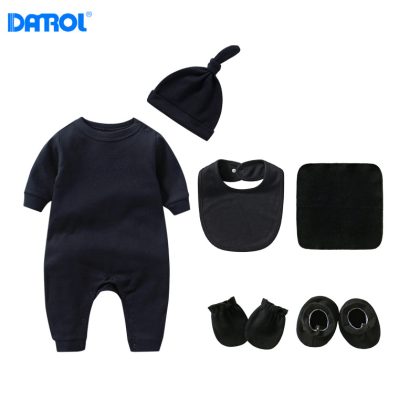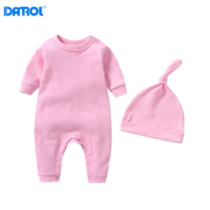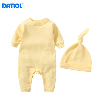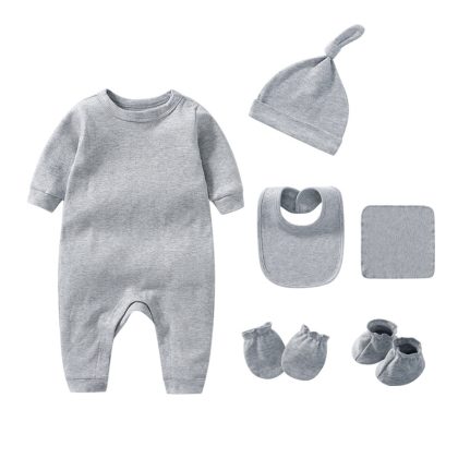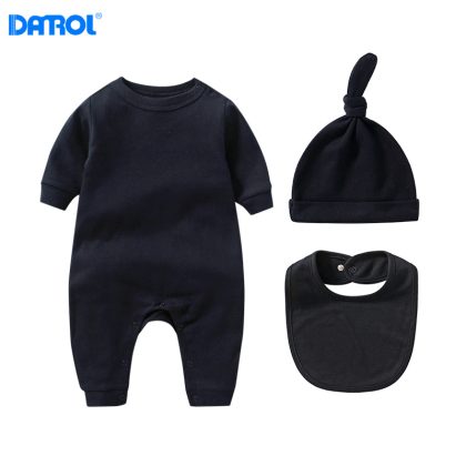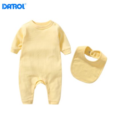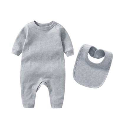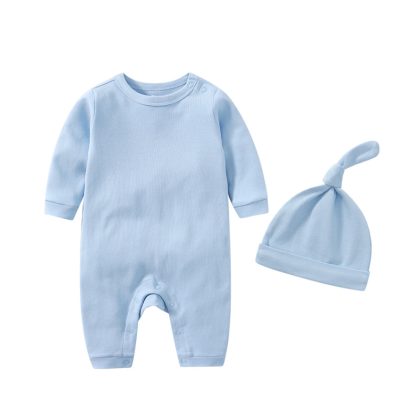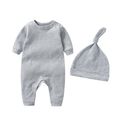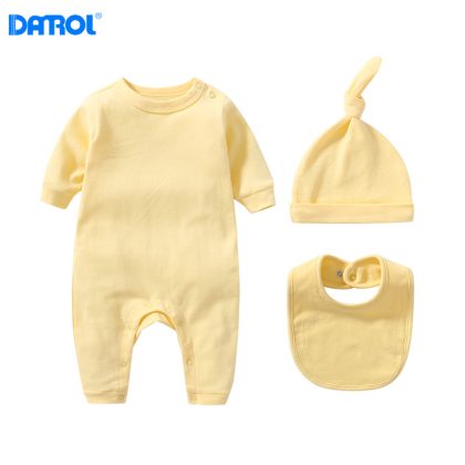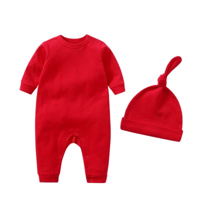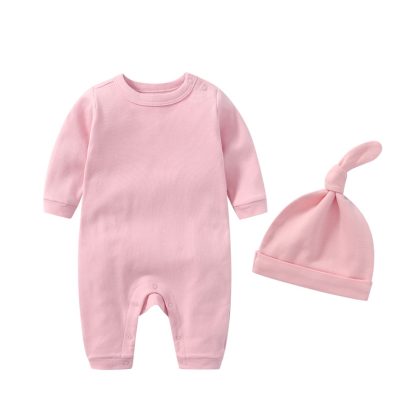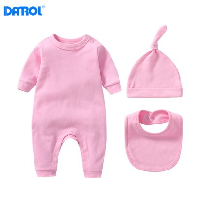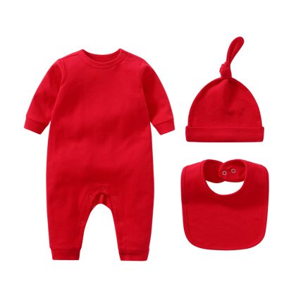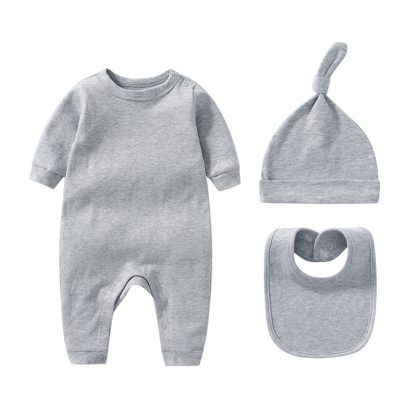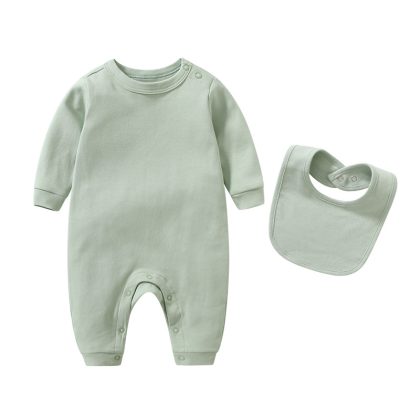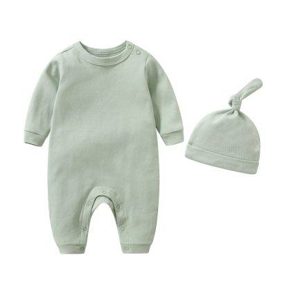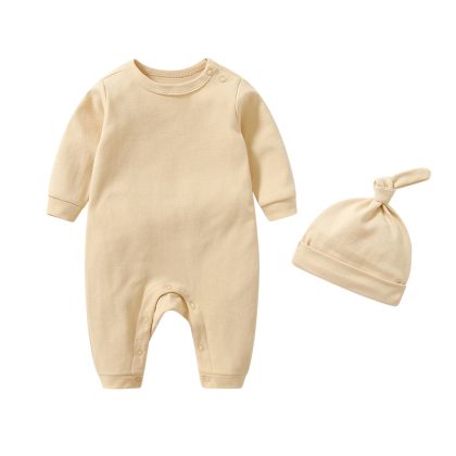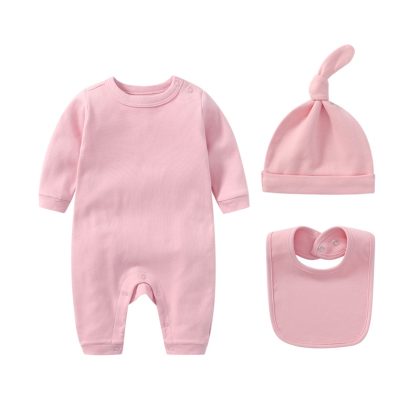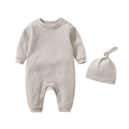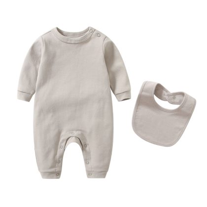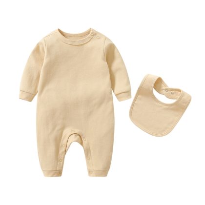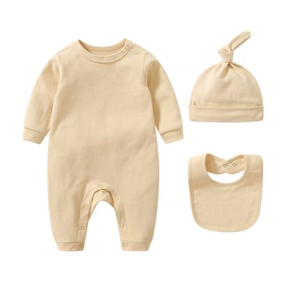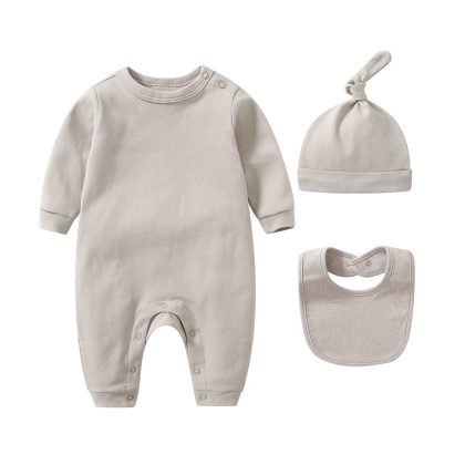 Newborn Baby Solid Color Cotton Shoulder Buckle Long Sleeve Climbing Jumpsuit Accessories Supplies Combination Set