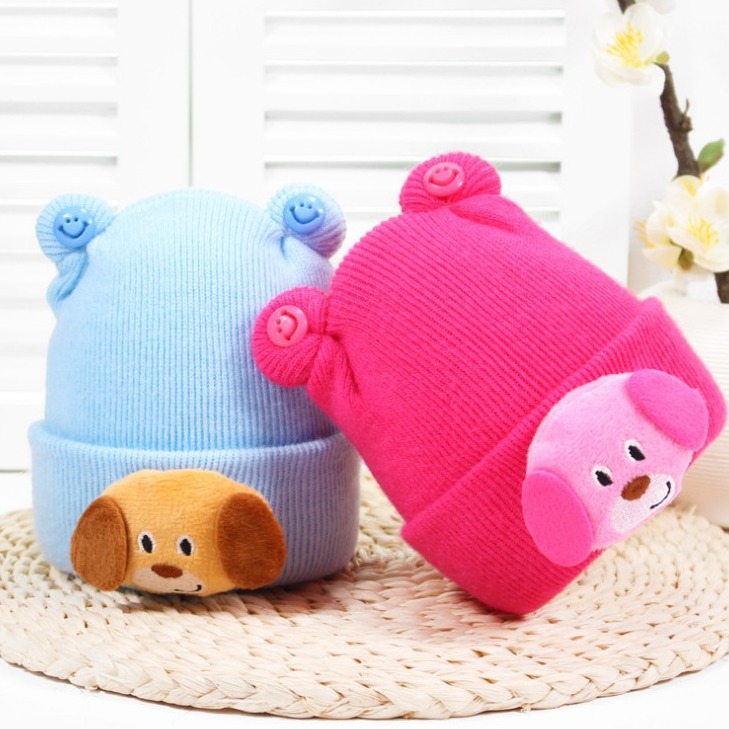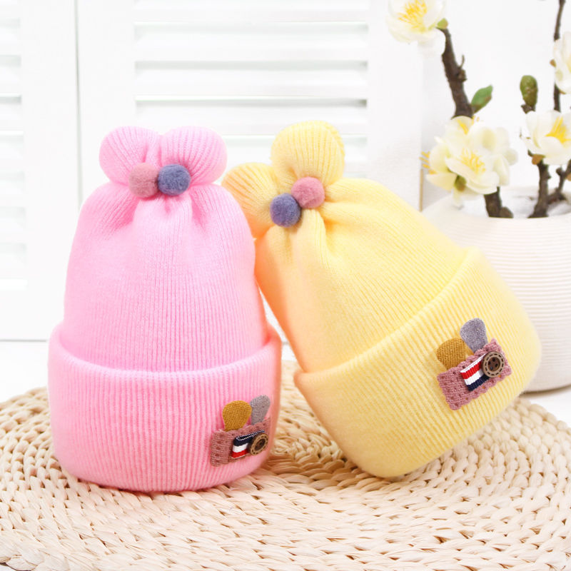 Newborn double-layer baby hat spring, autumn and winter thickened baby wool knitted hat 0-6 months newborn baby hat