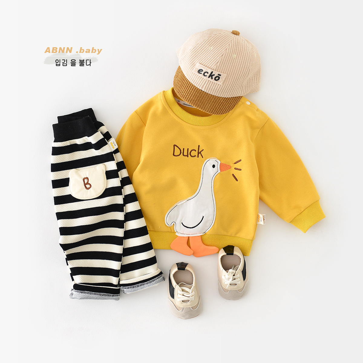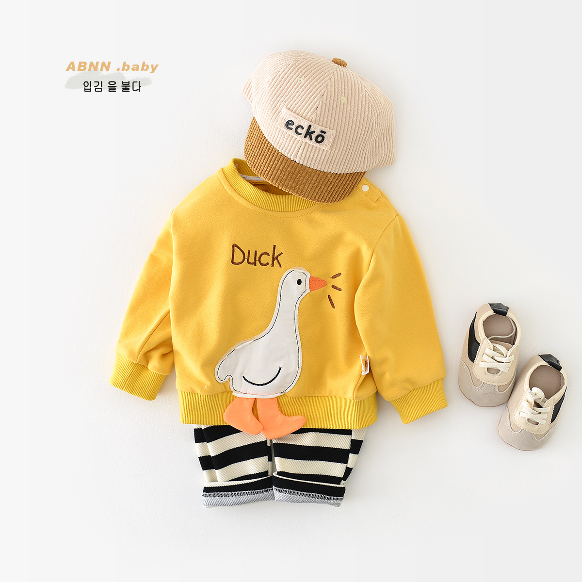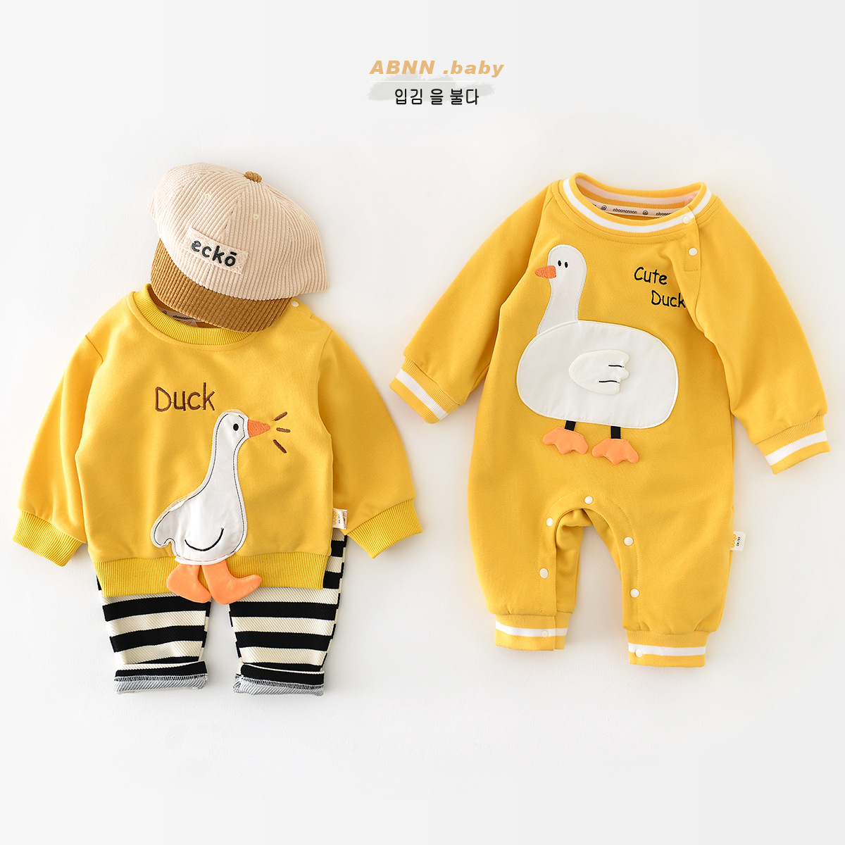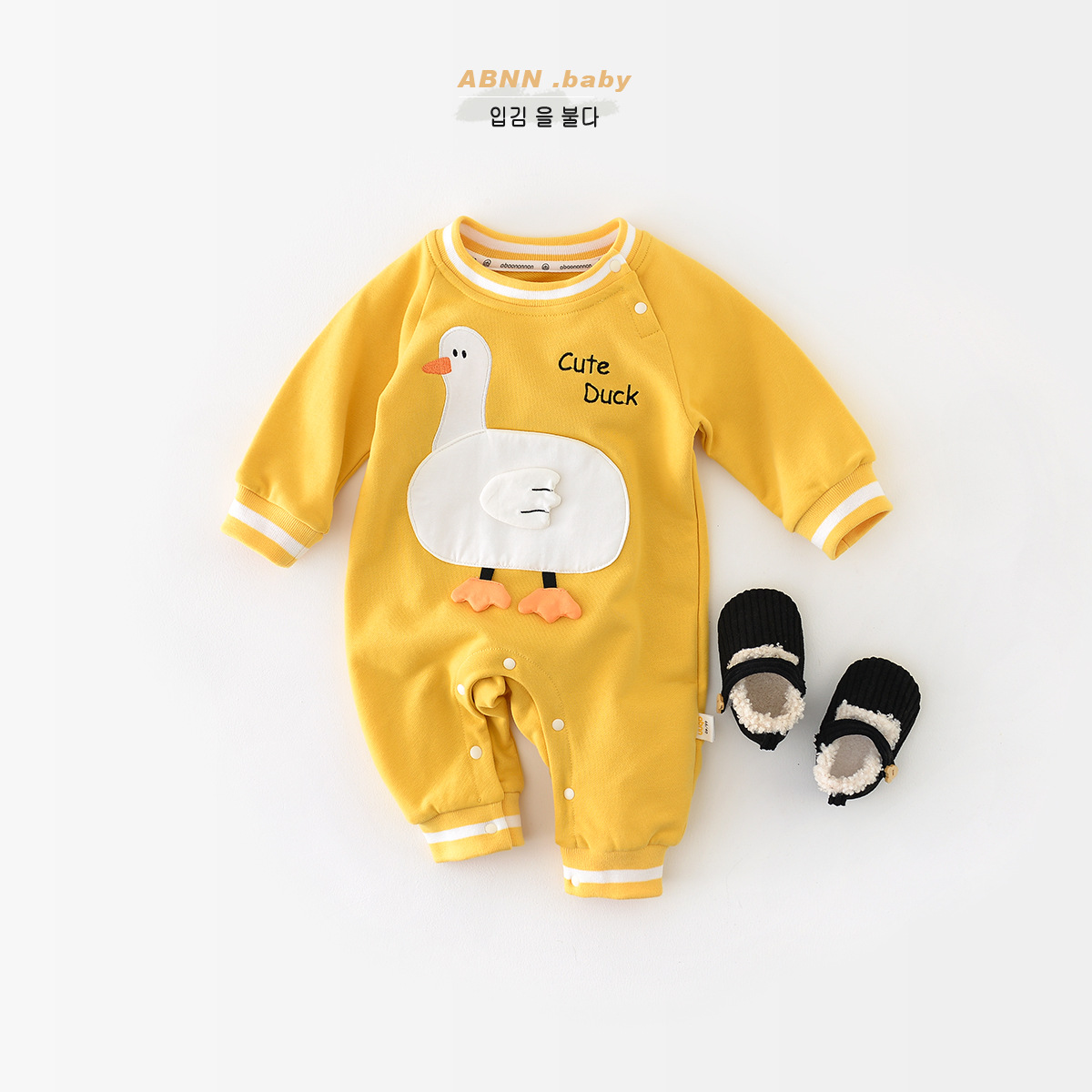 Newborn jumpsuit fun big white duck Western style romper baby autumn clothes bathroom clothes baby cotton long climbing full moon