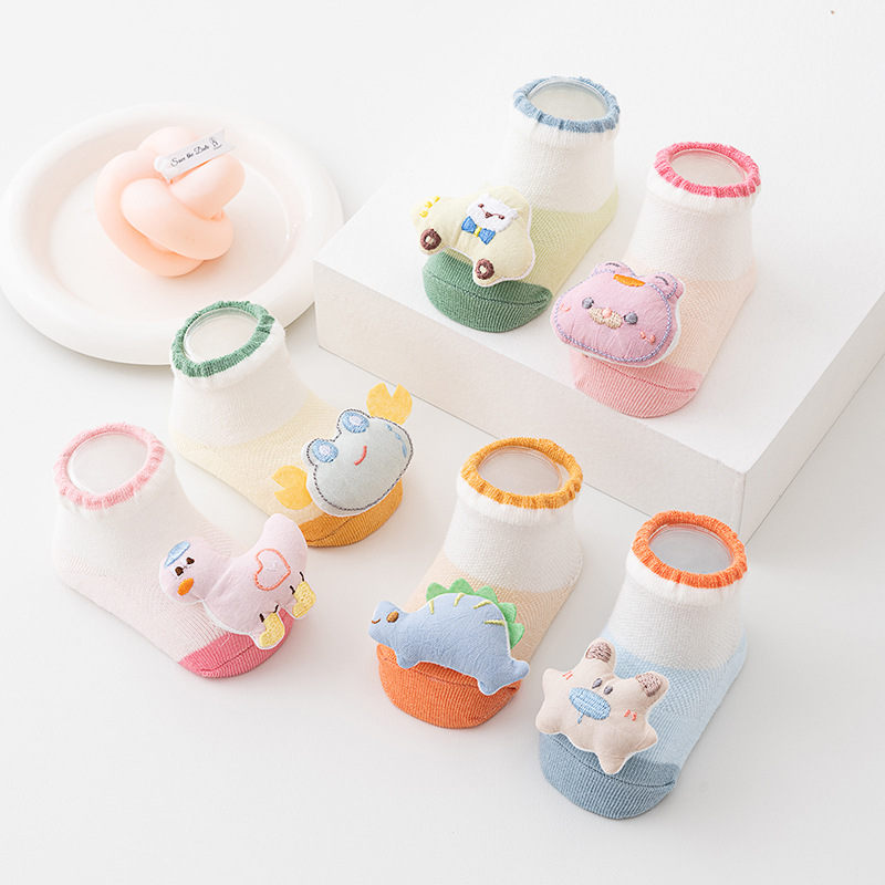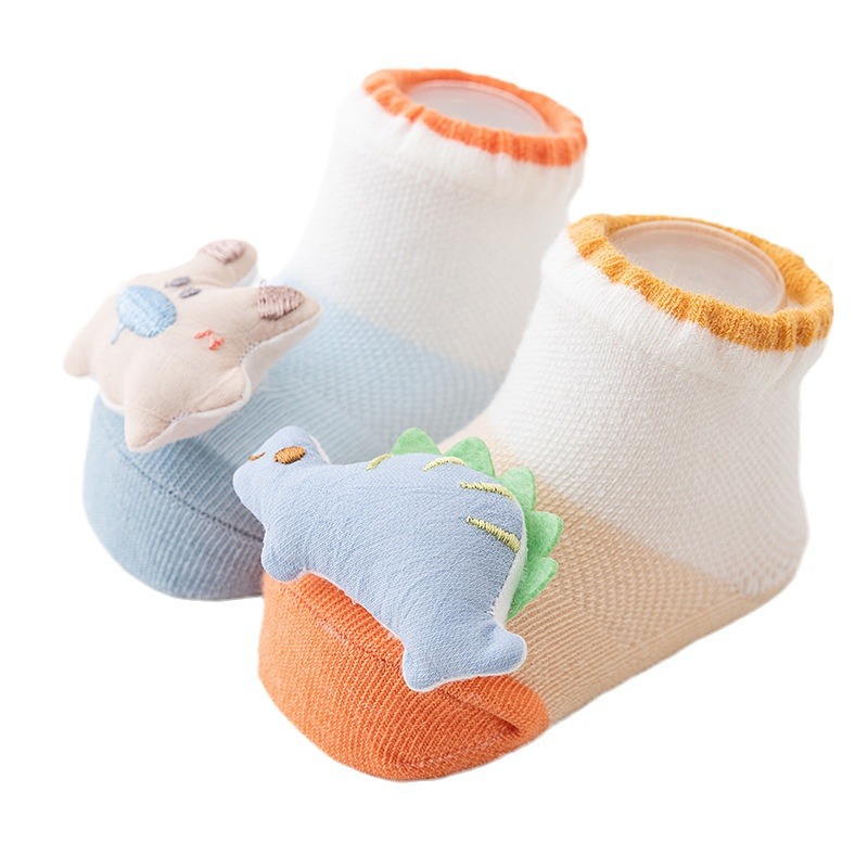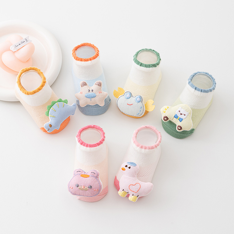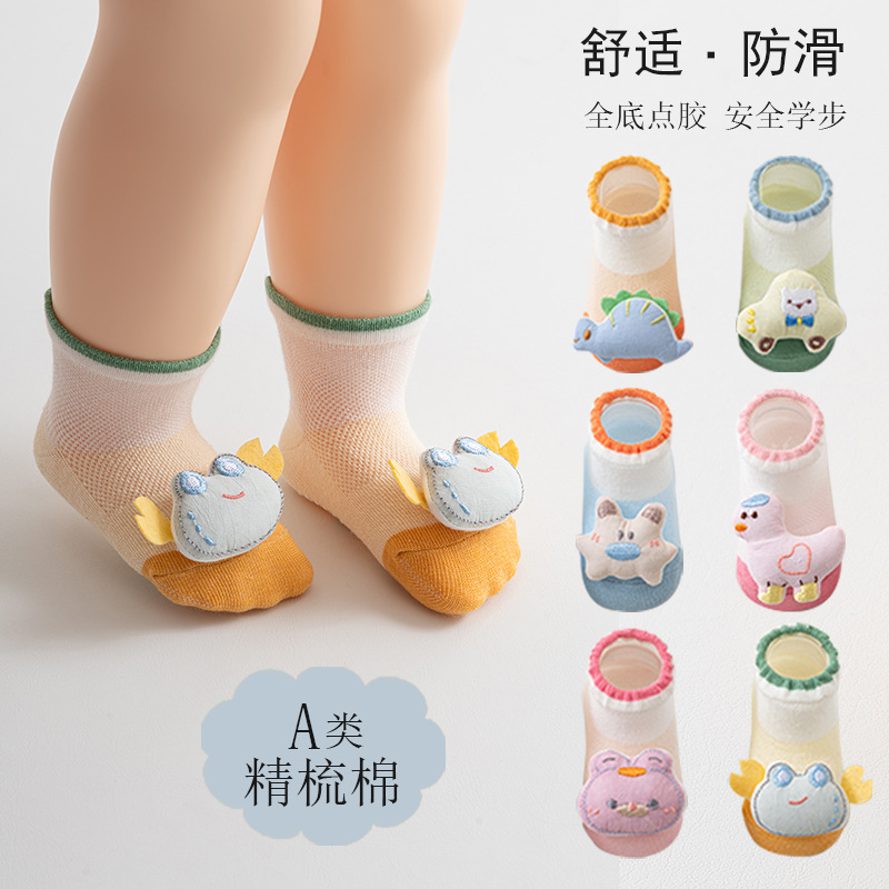 Newborn socks 0-6 months class a combed spring and summer cotton thin mesh baby socks cartoon baby non-slip socks
