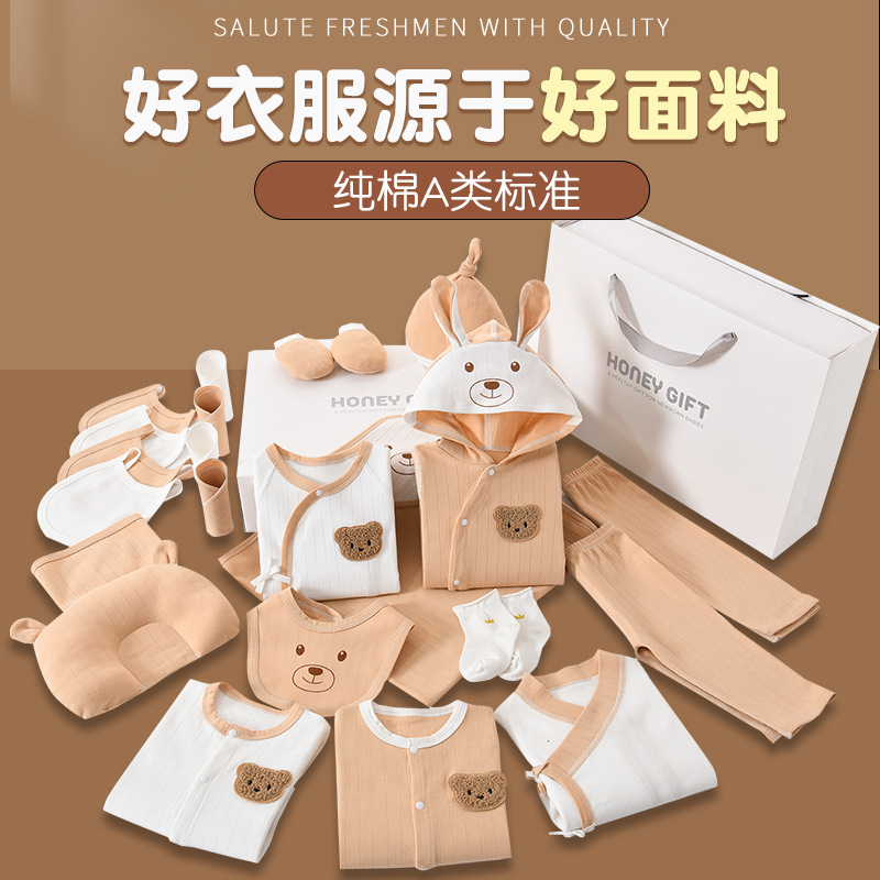 | nameOriginal | Newborn spring and summer gift box baby thin clothes newborn full moon baby suit birth supplies complete set box |