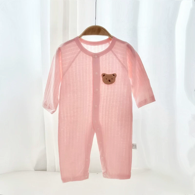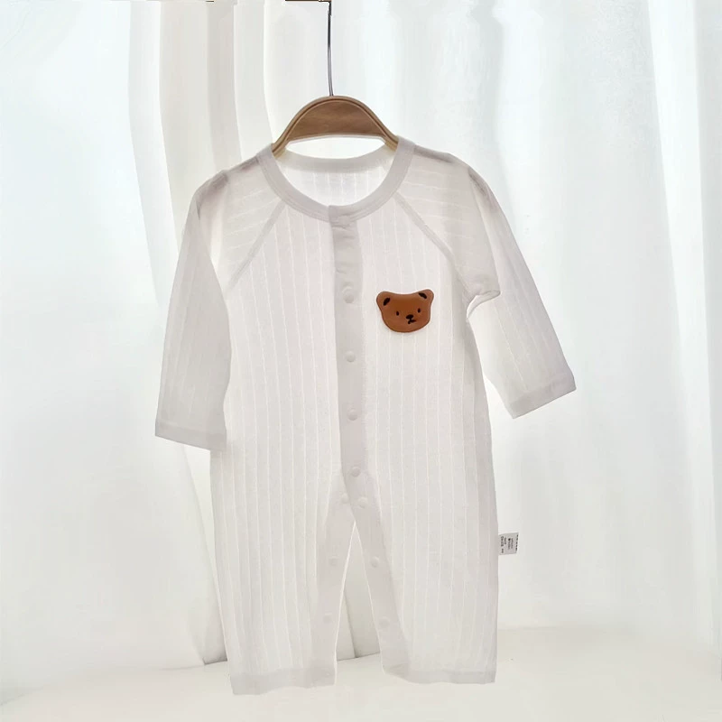 Newborn summer baby clothes pure cotton boneless mesh long-sleeved rompers jumpsuit air-conditioned clothes baby jumpsuit