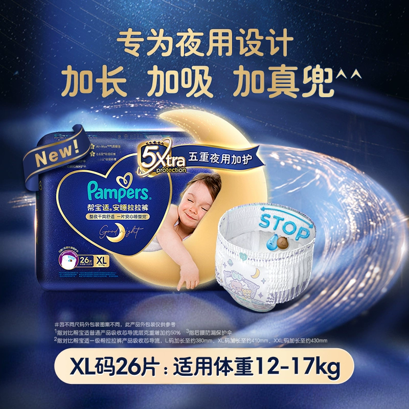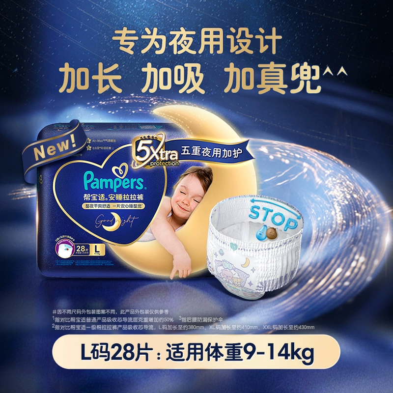 | nameOriginal | [Newly launched] Pampers Sleep Pull-ups L/XL/XXL/XXXL dry and breathable night diapers |