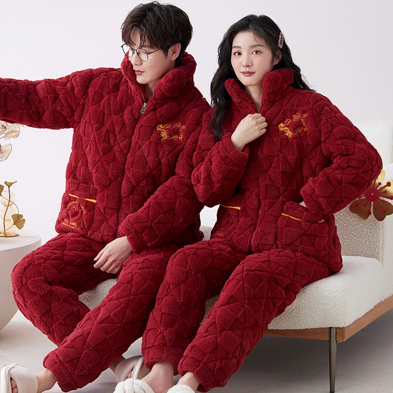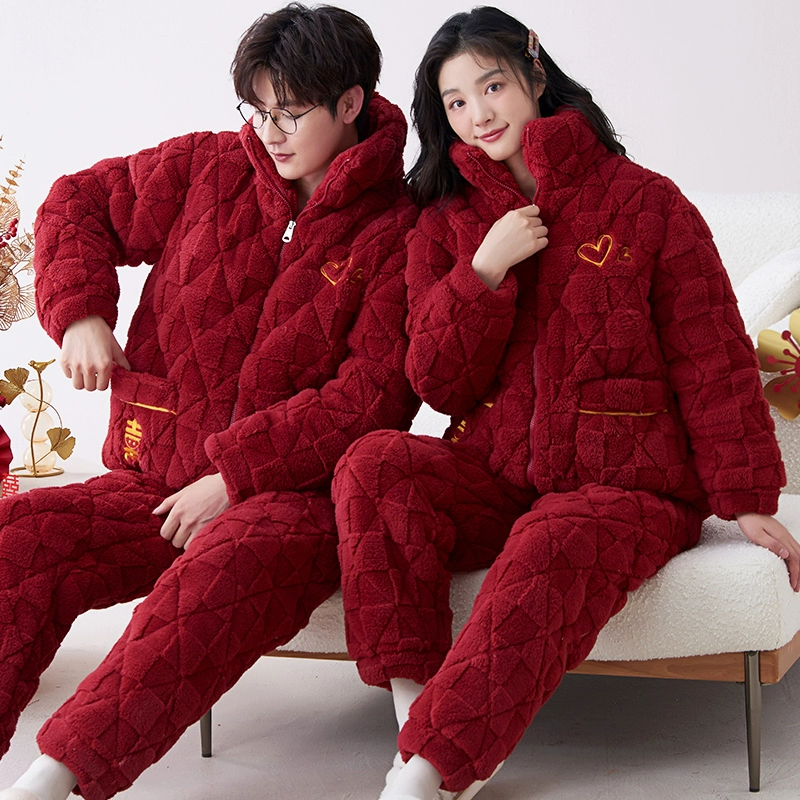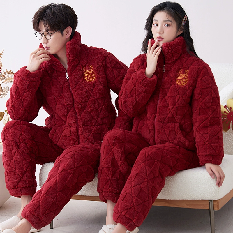 | nameOriginal | Newlywed plus velvet three-layer quilted bright red couple's pajamas |
