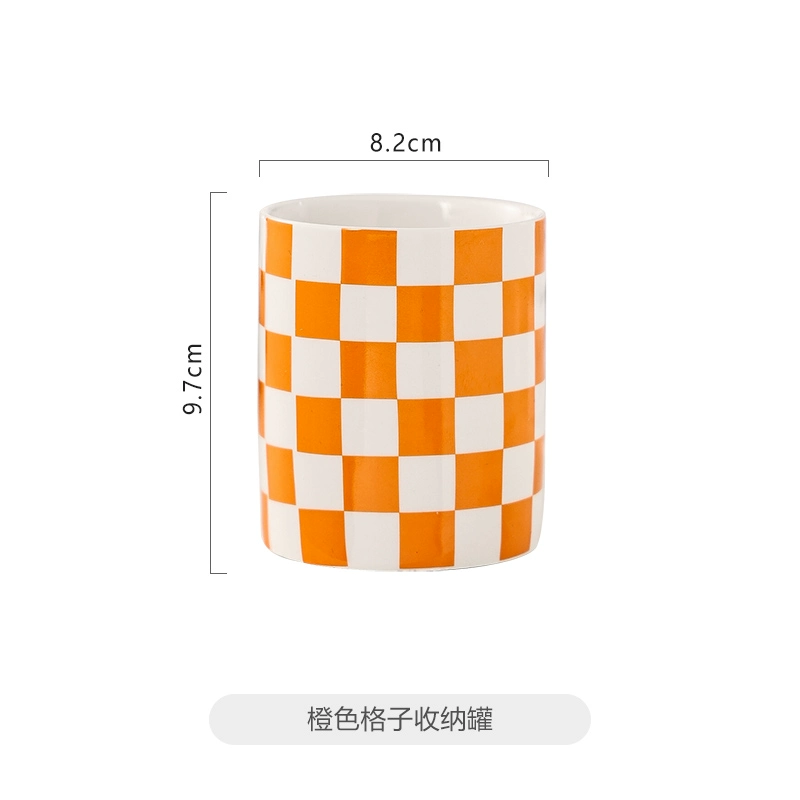 | nameOriginal | Next second Nordic ceramic comb storage tube desktop light luxury checkerboard pen holder makeup brush women's eyebrow pencil jar 913 |