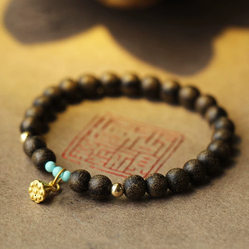 Nha Trang old material natural agarwood Buddha beads bracelet round bead single circle bracelet DIY handmade women’s model to play with and play with