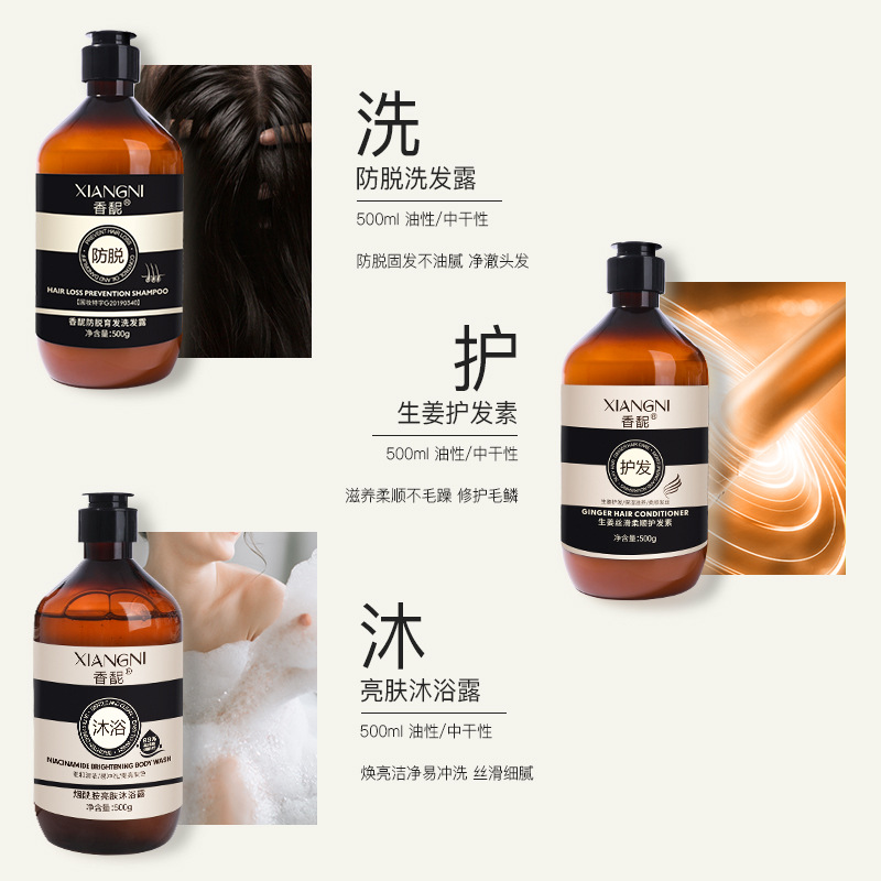 Niacinamide Ginger Juice Anti-off Washing and Protection Set Hair Raising Shampoo Hair Conditioner Niacinamide Body Soap