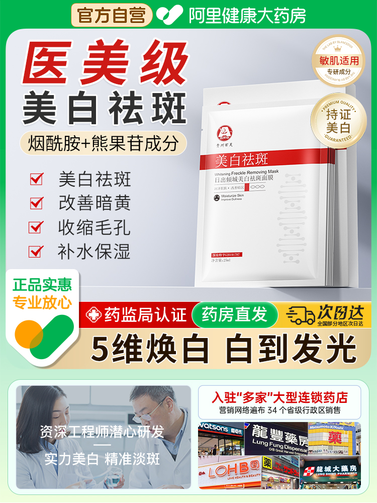 Niacinamide whitening and lightening mask, hydrating, removing yellowing, dullness, freckles, brightening skin tone, moisturizing and anti-oxidant flagship authentic product