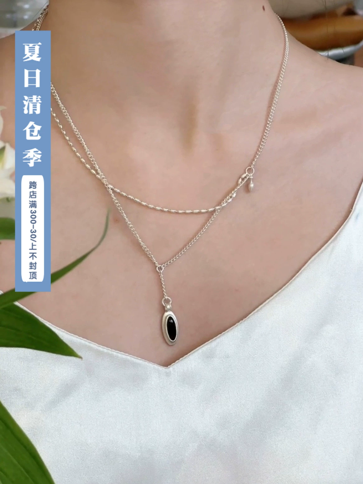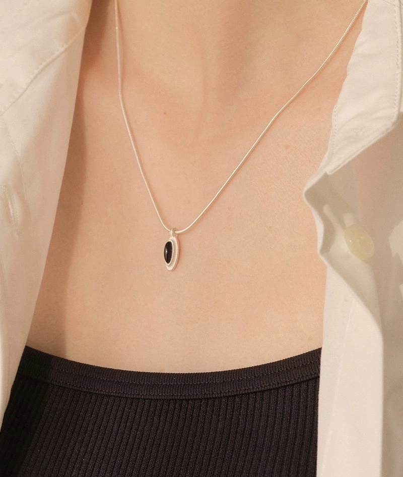 Niche 925 sterling silver Dong Jie’s same chalcedony black agate