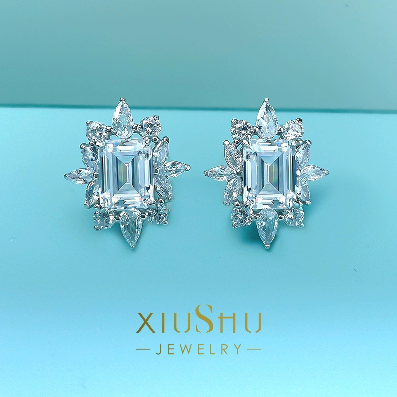 Niche 925 sterling silver inlaid with high carbon diamond retro flowers