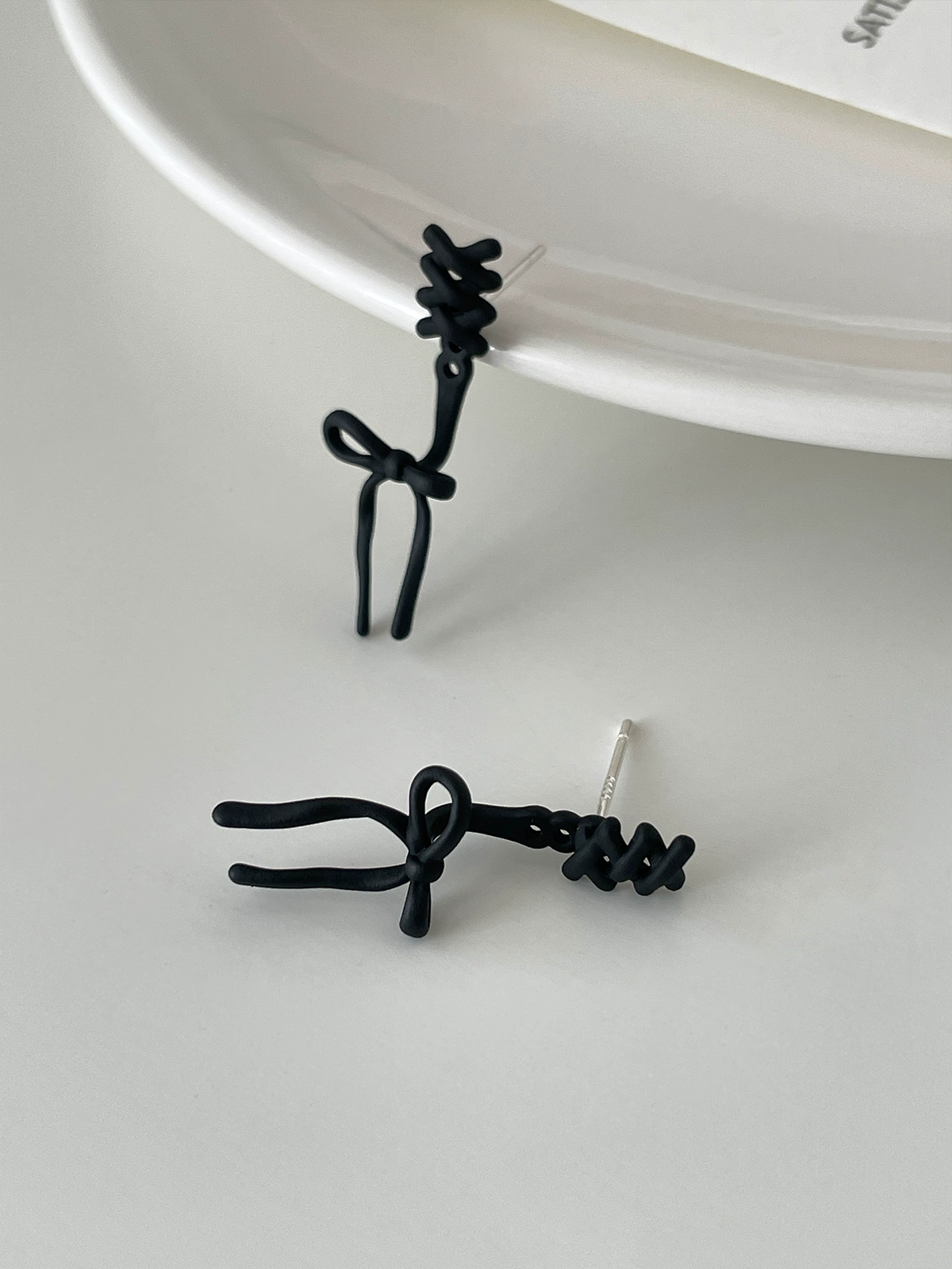 | nameOriginal | Niche black stud earrings for women with sterling silver ribbon and bow |