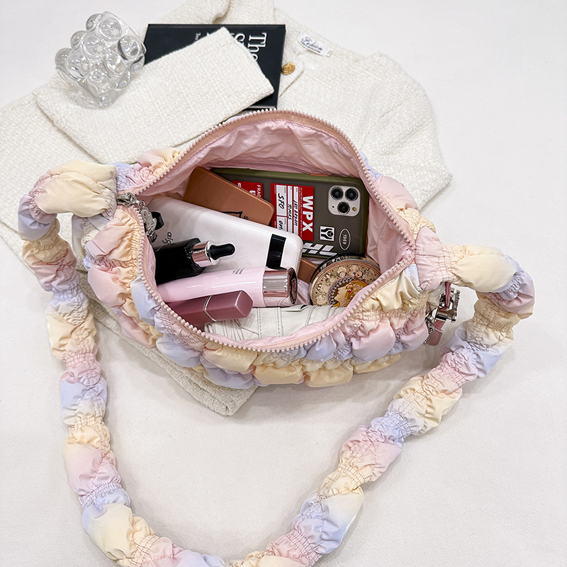 | nameOriginal | Niche Bubble Women's Bag 2024 Korean Style Fashionable Lovely Shoulder Underarm Bag Casual Fashion Colorful Pleated Cloud Bag |