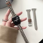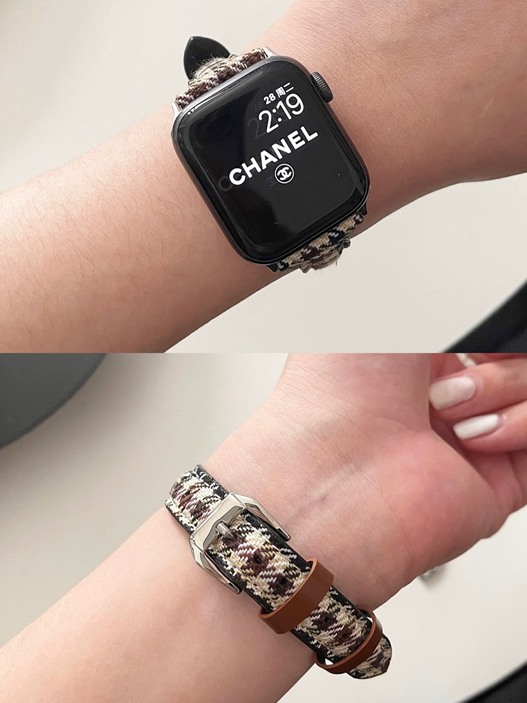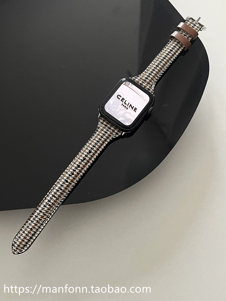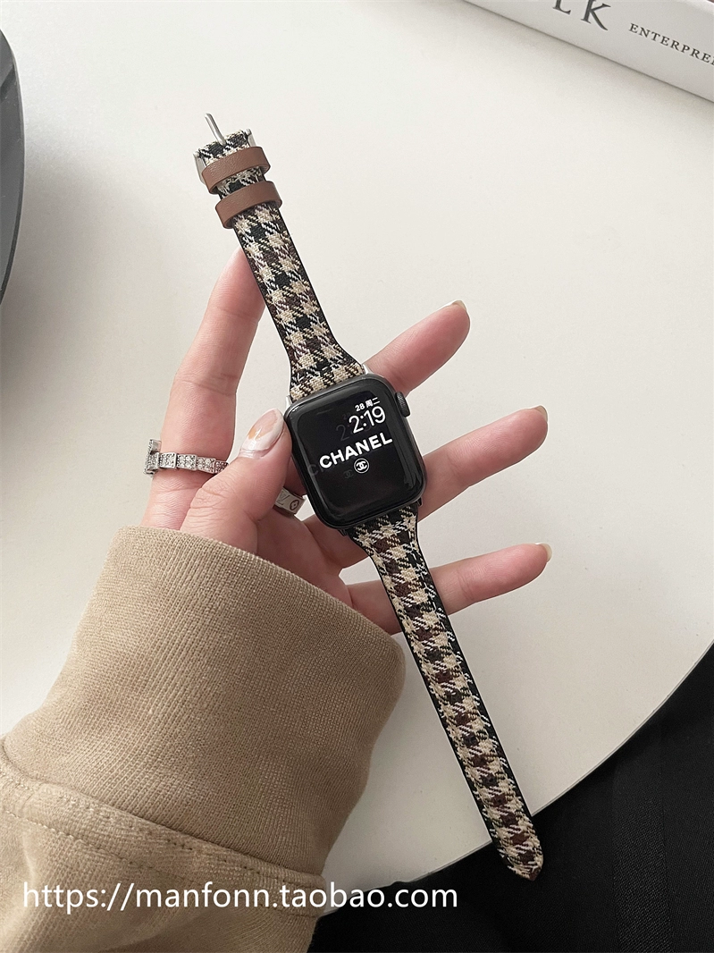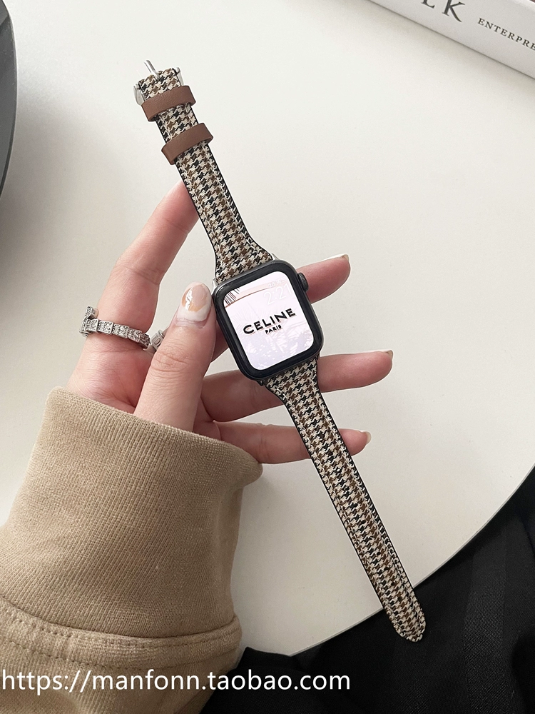 Niche canvas houndstooth pattern suitable for Apple 789 watch iwatch654se genuine leather small waist strap