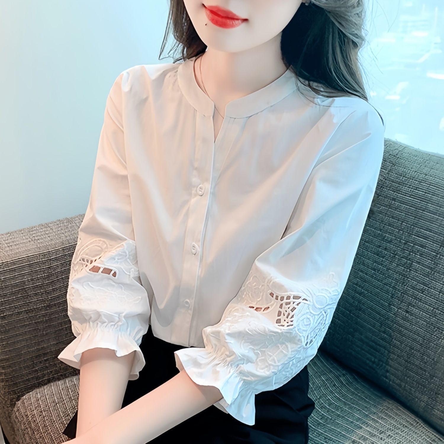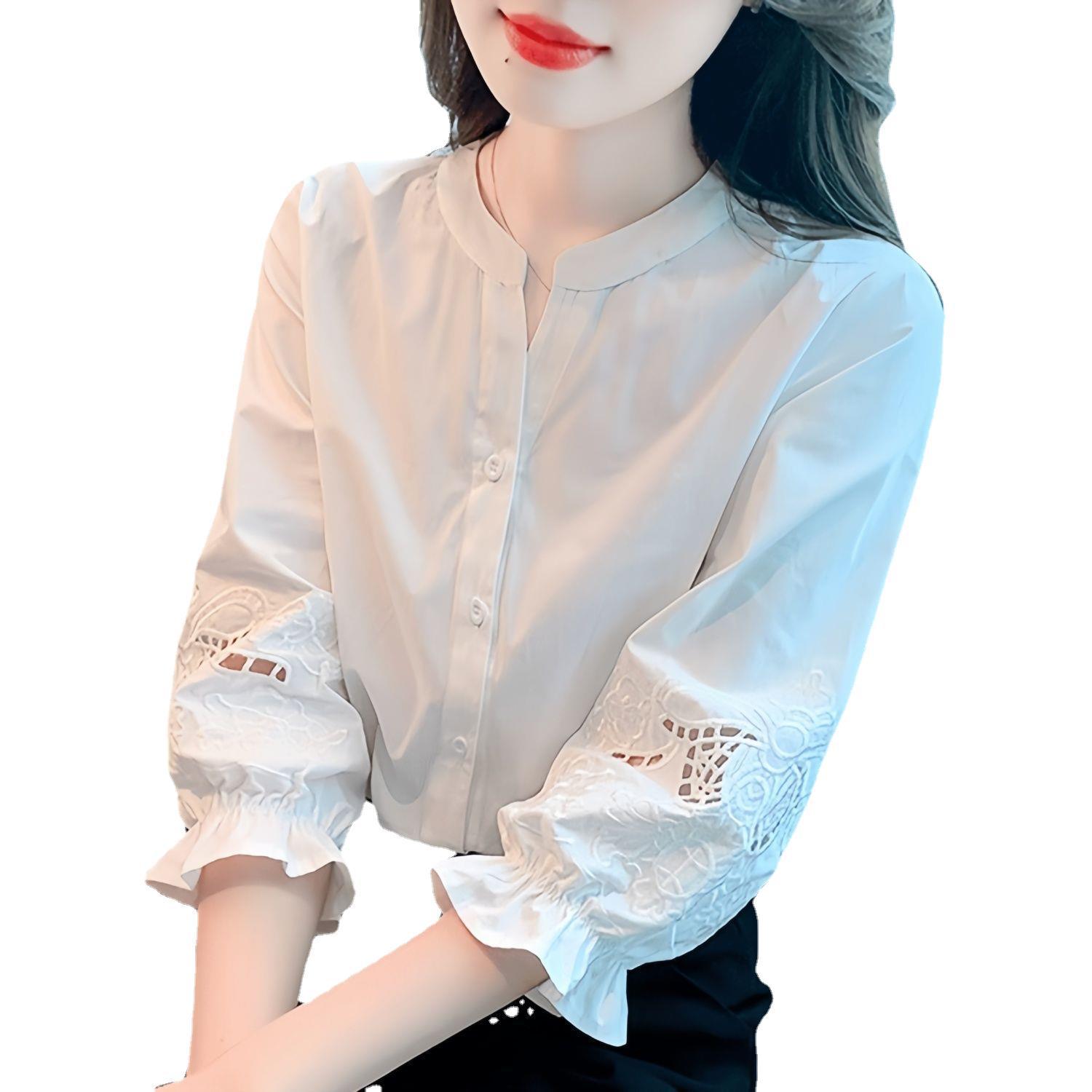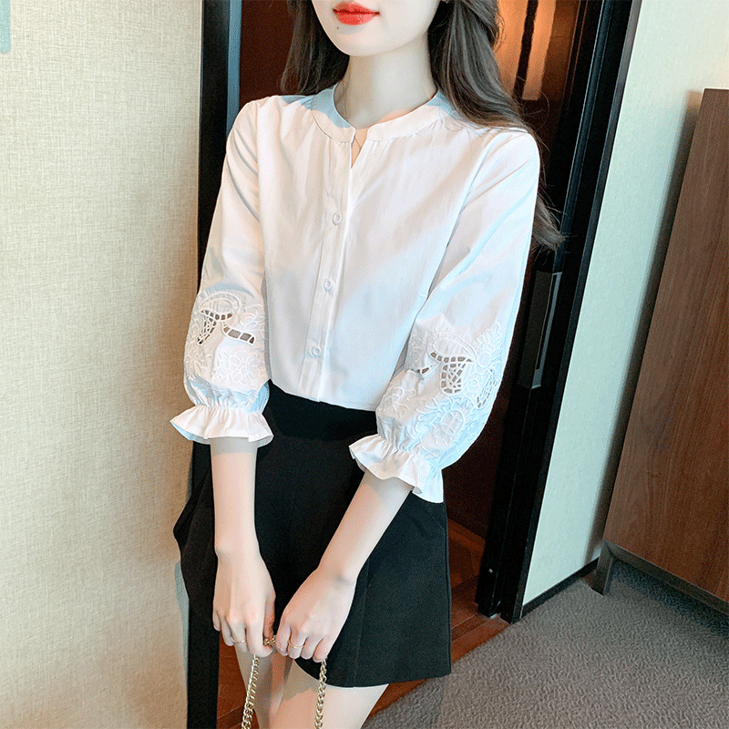 Niche Chic Top Hollow Embroidered Shirt Women's Summer New Loose All-match Seven-sleeve Shirt White Others