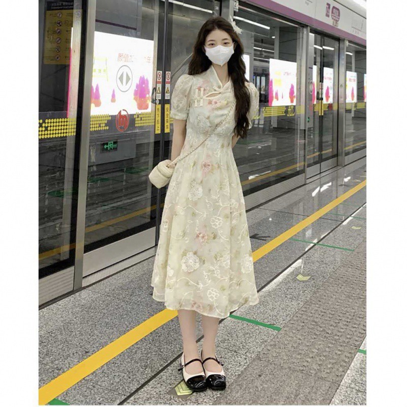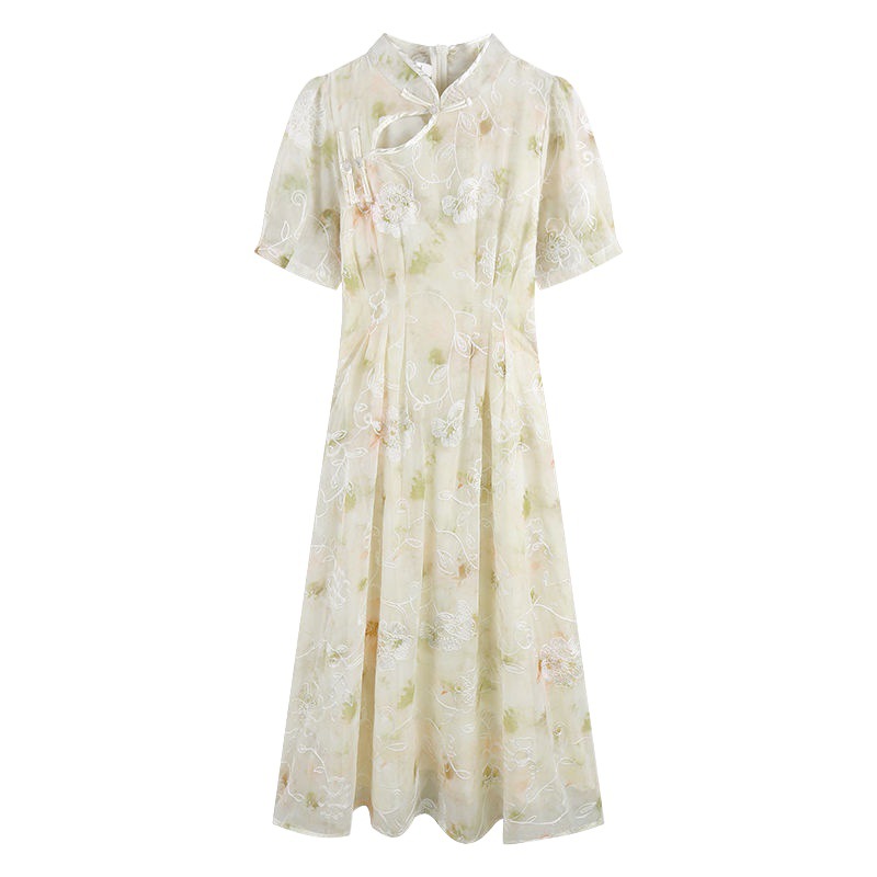 | nameOriginal | Niche Chinese Cheongsam Design A- word Slim Skirt Light Mature dress Girl Summer 2024 New Embroidery |