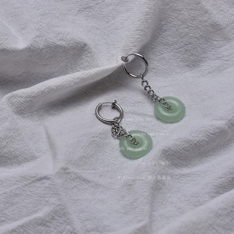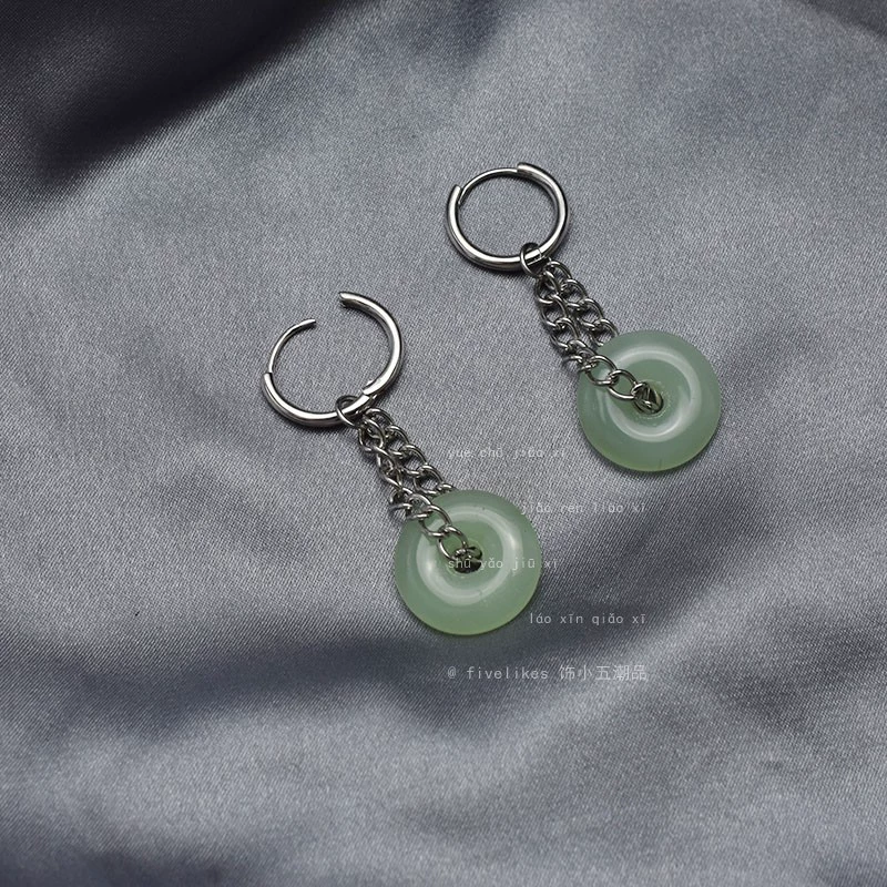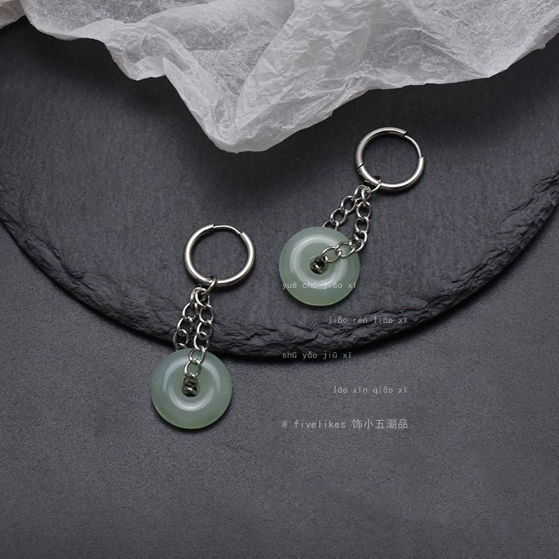 | nameOriginal | Niche Chinese style men's and women's sterling silver jade earrings |