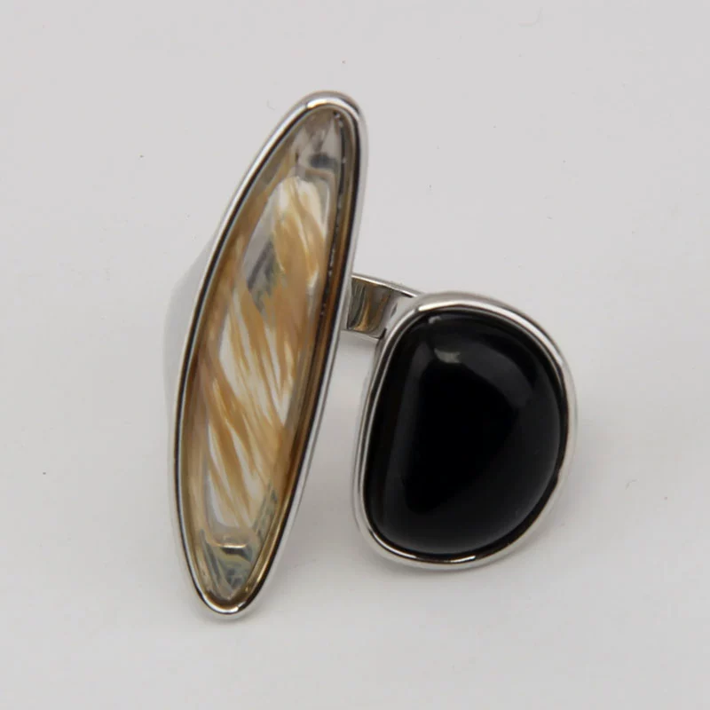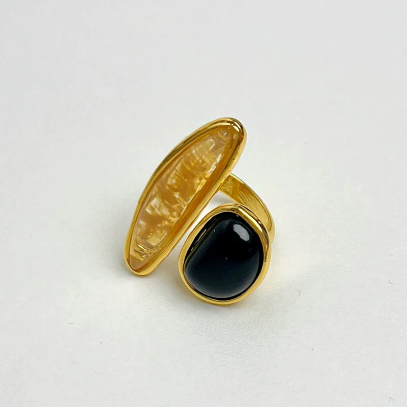 | nameOriginal | Niche cold style black gemstone stacked open ring |