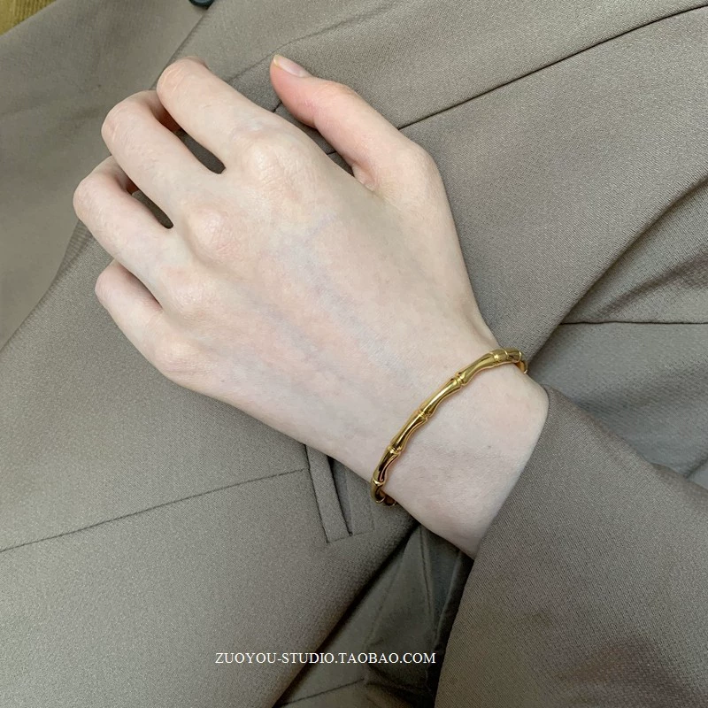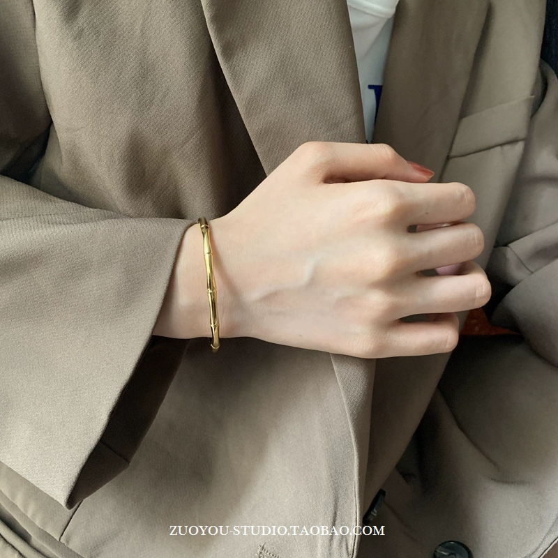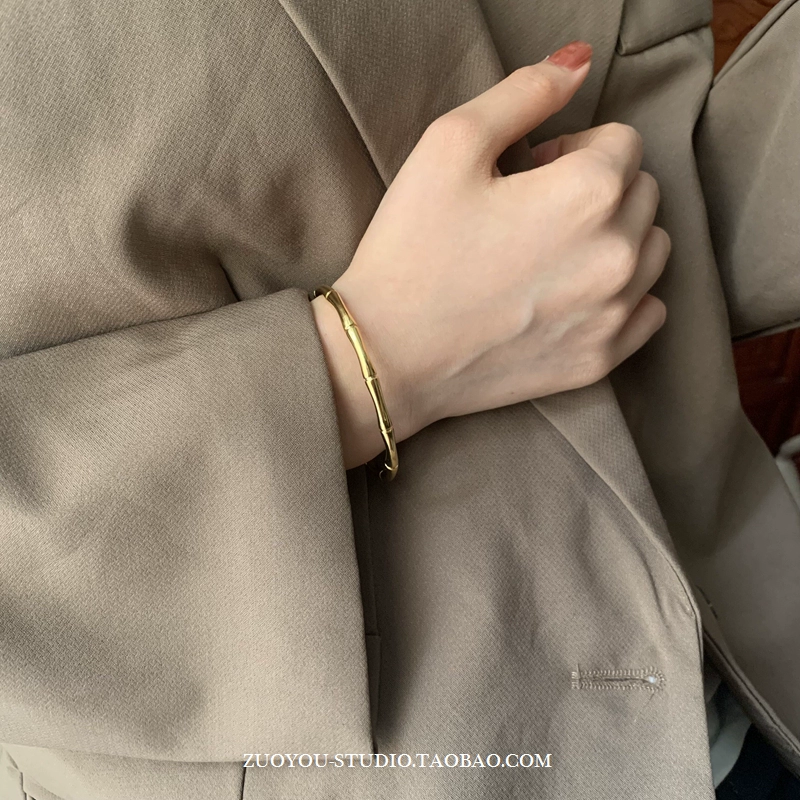 Niche cold style bracelet for women INS trendy fashion versatile 18K gold bamboo light luxury luxury internet celebrity open bracelet