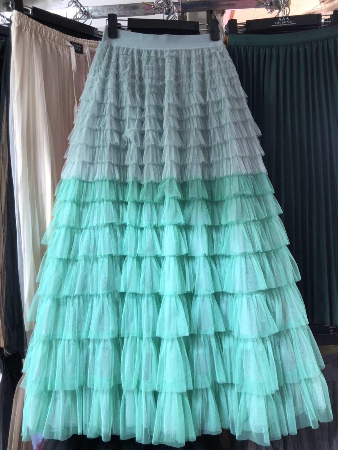 | nameOriginal | Niche color-blocked cake autumn and winter floor-length ankle-length mesh skirt |