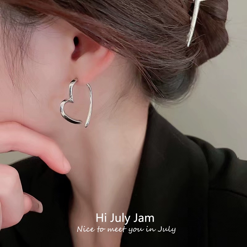 Niche crossover women's spring and summer sterling silver heart-shaped earrings
