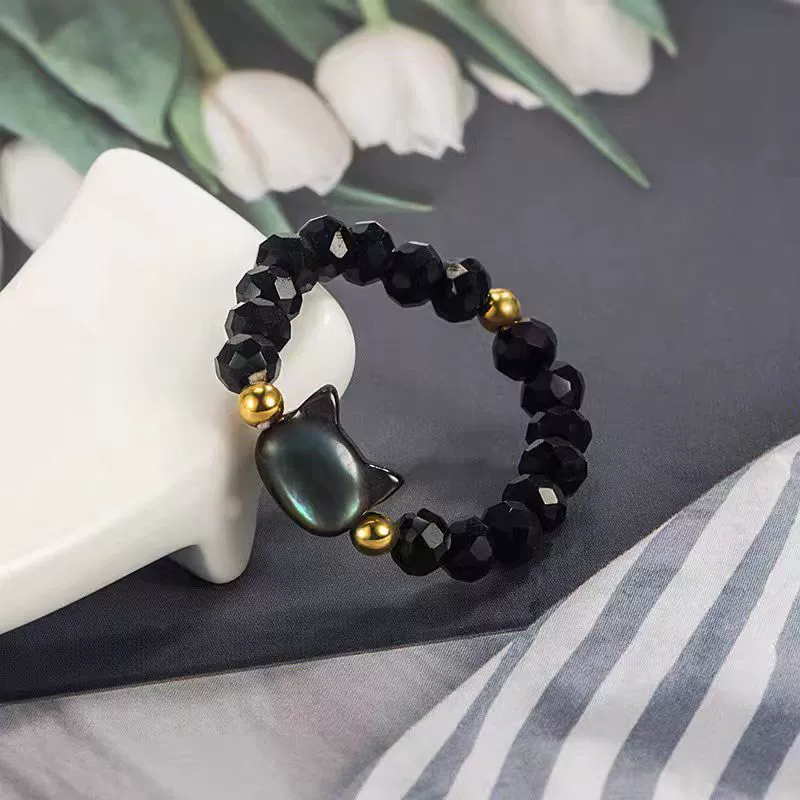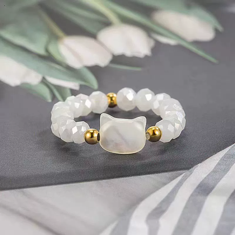 | nameOriginal | Niche cute crystal cat head bestie ring beaded |