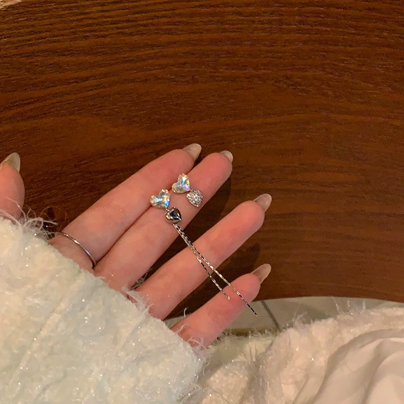 Niche design asymmetrical zircon love earrings for women Korean ins simple temperament cold style earrings