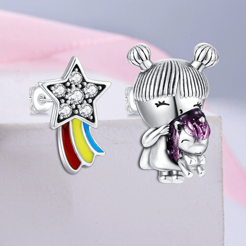| nameOriginal | Niche design beads 925 silver cartoon sun and moon earrings |