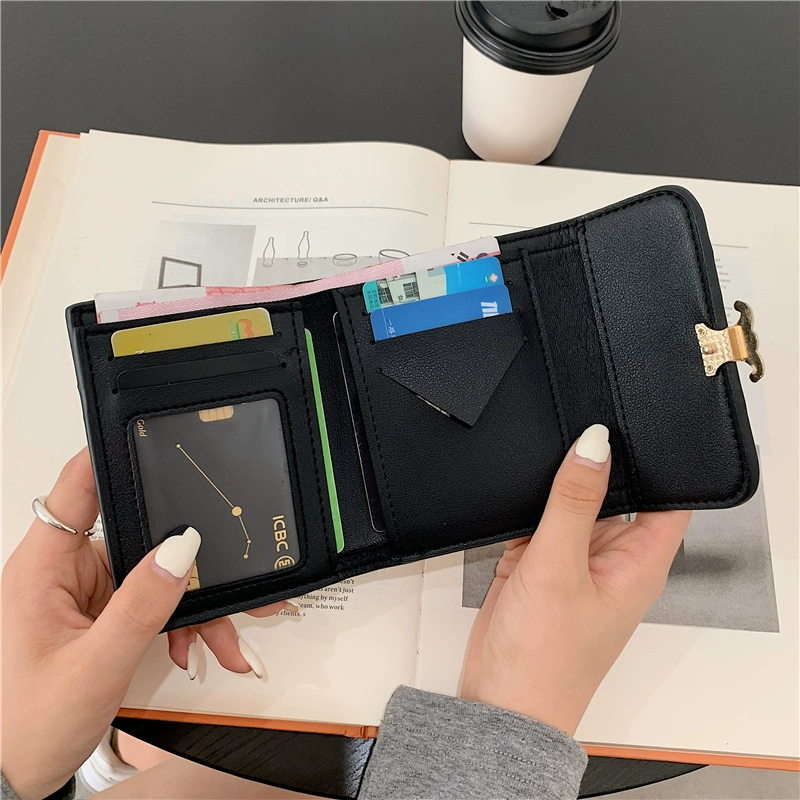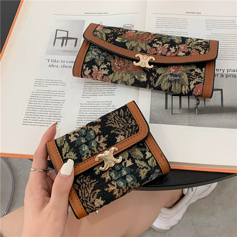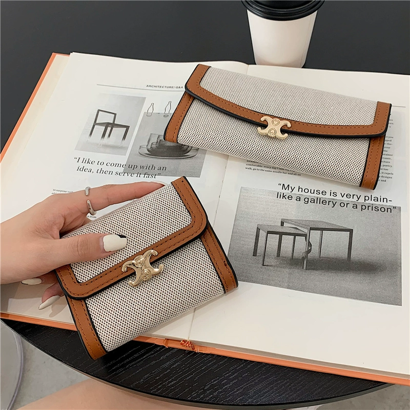 | nameOriginal | Niche design canvas small wallet women's short retro three-fold coin clip multi-card slot buckle long clutch bag |